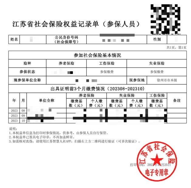 (江苏智慧人社APP-个人权益单-江苏省社会保险权益记录单)