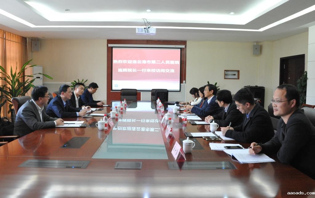 4月17日下午,连云港市第二人民医院党委书记、院长施辉一行4人来校访问交流。校领导郑葵阳、蔡红星及相关职能部门负责同志出席座谈会。