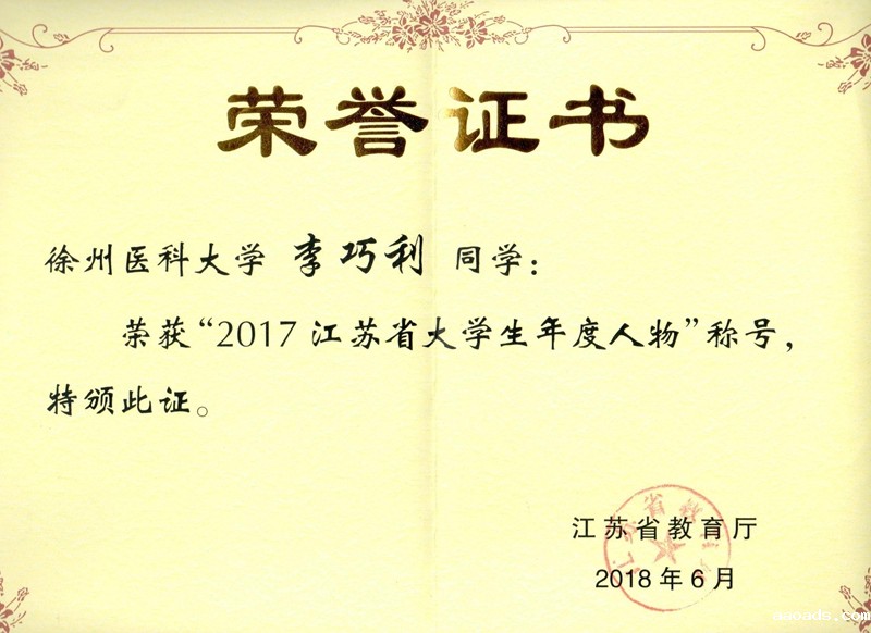 我校临床医学系李巧利同学当选“2017江苏省大学生年度人物”,实现了我校在此项评选活动中“零”的突破。医学影像学院辅导员邵珍珍老师荣获“2017江苏高校辅导员年度人物”入围奖。
