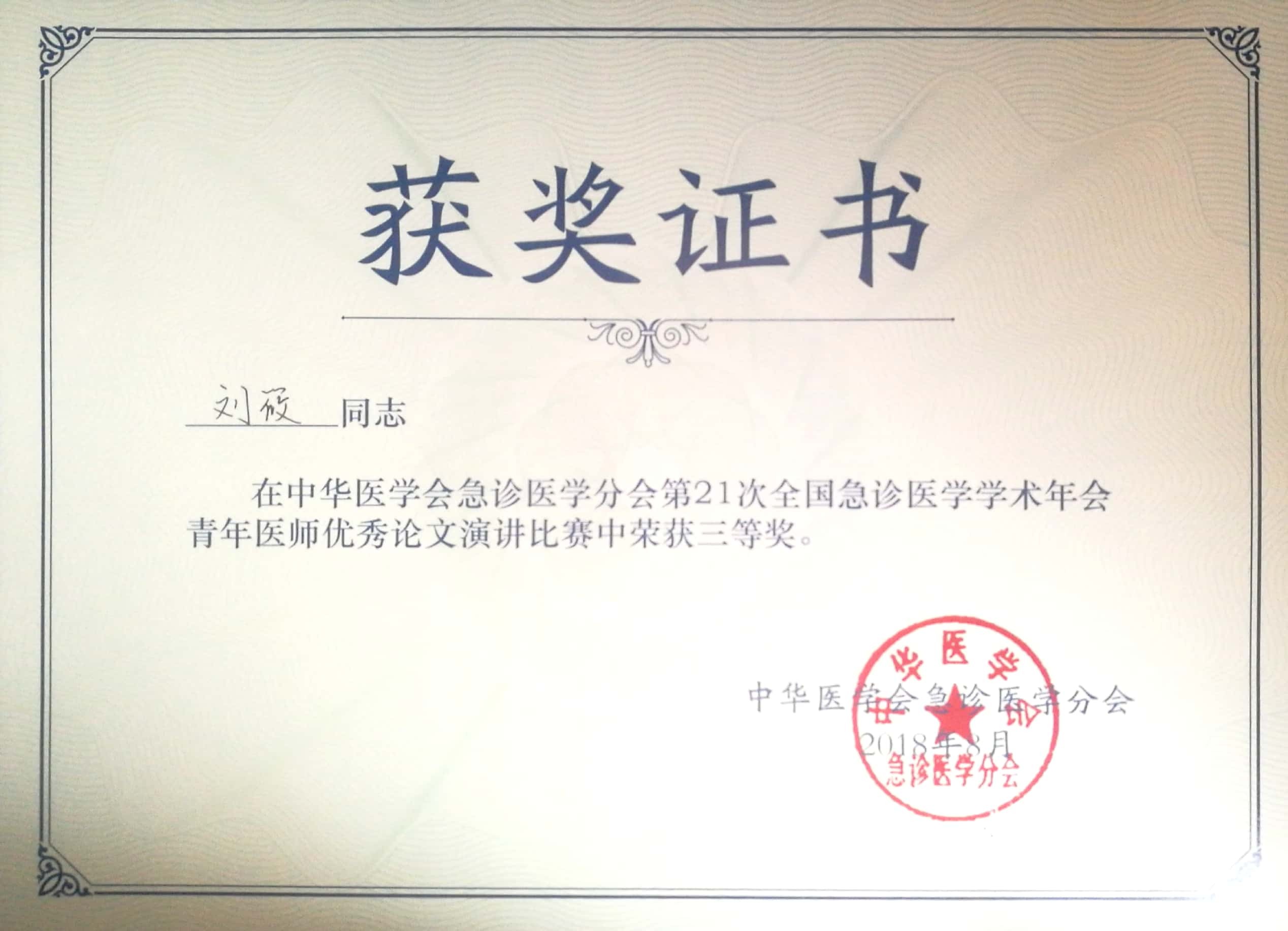 我校急救与救援医学系创伤医学教研室青年教师刘筱博士的论文《VEGF基因修饰BMSCs移植治疗脊髓损伤大鼠的实验研究》在2000余篇投稿中被选中参加优秀论文演讲比赛,作为第一个出场的选手,他沉着应对,声情并茂、思路清晰,获得评委专家的高度赞扬,最终获得三等奖。