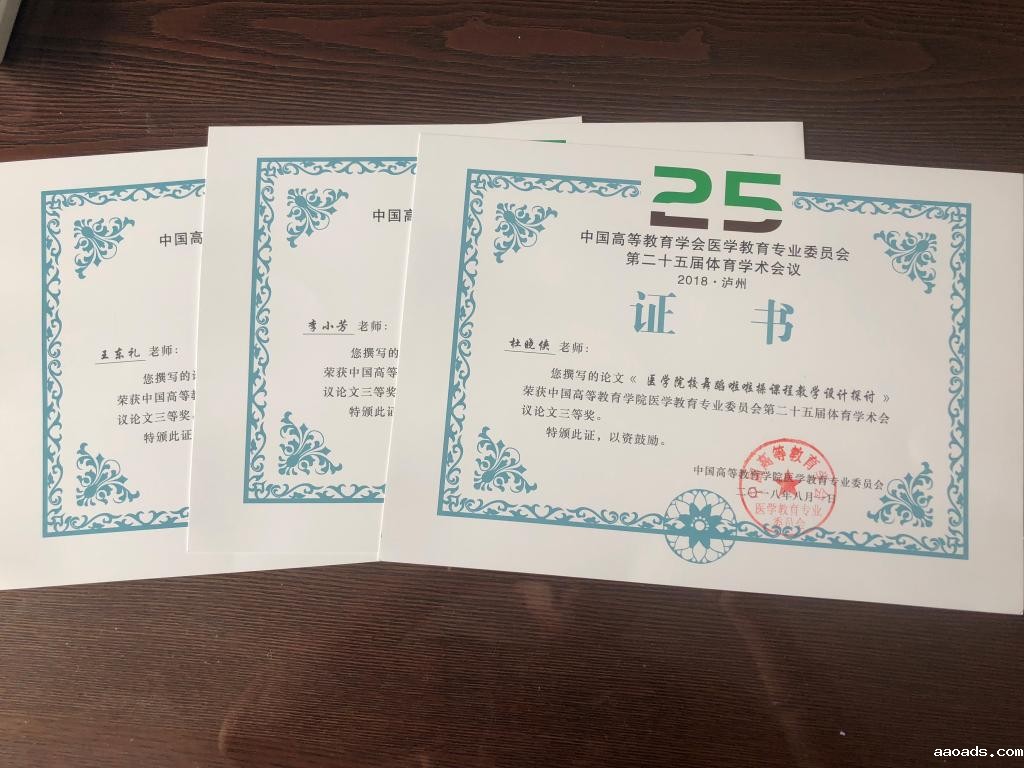 8月1日-5日,中国高等教育学会医学教育专业委员会第二十五届体育学术论文报告会及教师技能赛(网球)在西南医科大学隆重举行。我校共有6篇论文投稿本届论文报告会,其中姚莉老师的论文“啦啦操运动对女生身体素质的影响分析”获得二等奖,王东礼、杜晓侠、李小芳老师的3篇论文获得三等奖。