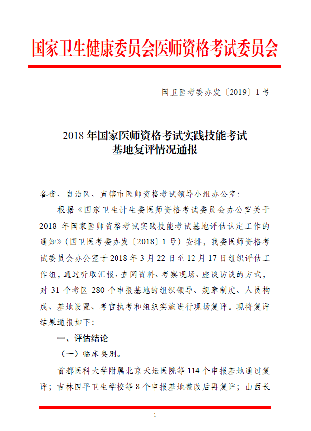 近日,从“国家卫生健康委员会医师资格考试委员会”传来喜讯,我校顺利通过了“国家医师资格考试实践技能考试基地”的遴选(《2018年国家医师资格考试实践技能考试基地复评情况通报》国卫医考委办发[2019]1号),正式成为国家级执业医师考试基地。