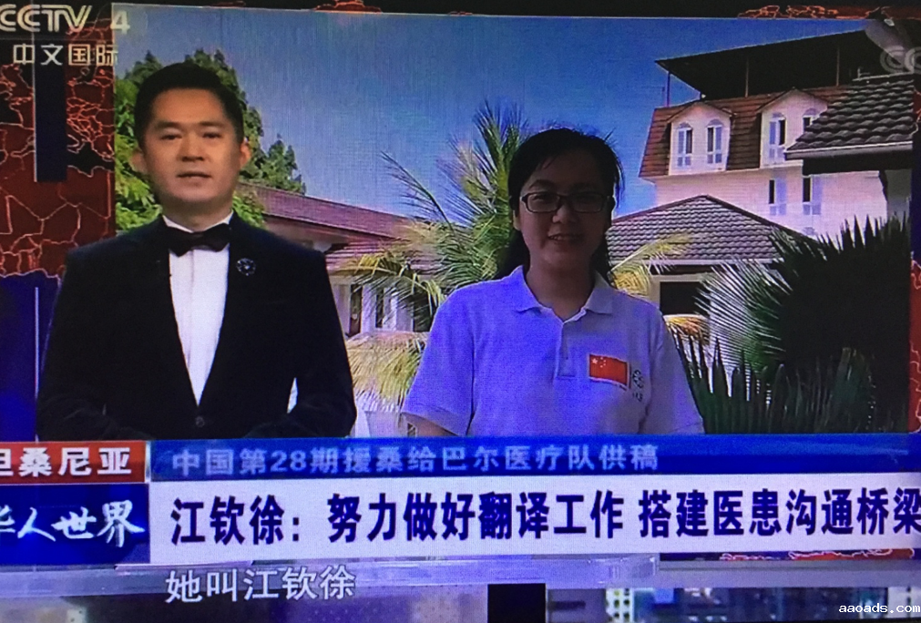 2019年1月16日,江钦徐同志的翻译工作被央视CCTV4《华人世界》报道,这是全国第一位援外翻译被央视宣传报道。因工作表现优秀,桑卫生部部长亲自为她颁发“优秀翻译”荣誉证书。同时,为感谢我校派出优秀翻译,桑卫生部部长特意向我校赠送桑给巴尔木门,木门是桑给巴尔赠送最高殊荣的礼物。这是中国(江苏)援外50多年来,第一位翻译荣获此荣誉称号,也是第一家翻译派出单位荣获受援国赠送的桑给巴尔木门礼物。