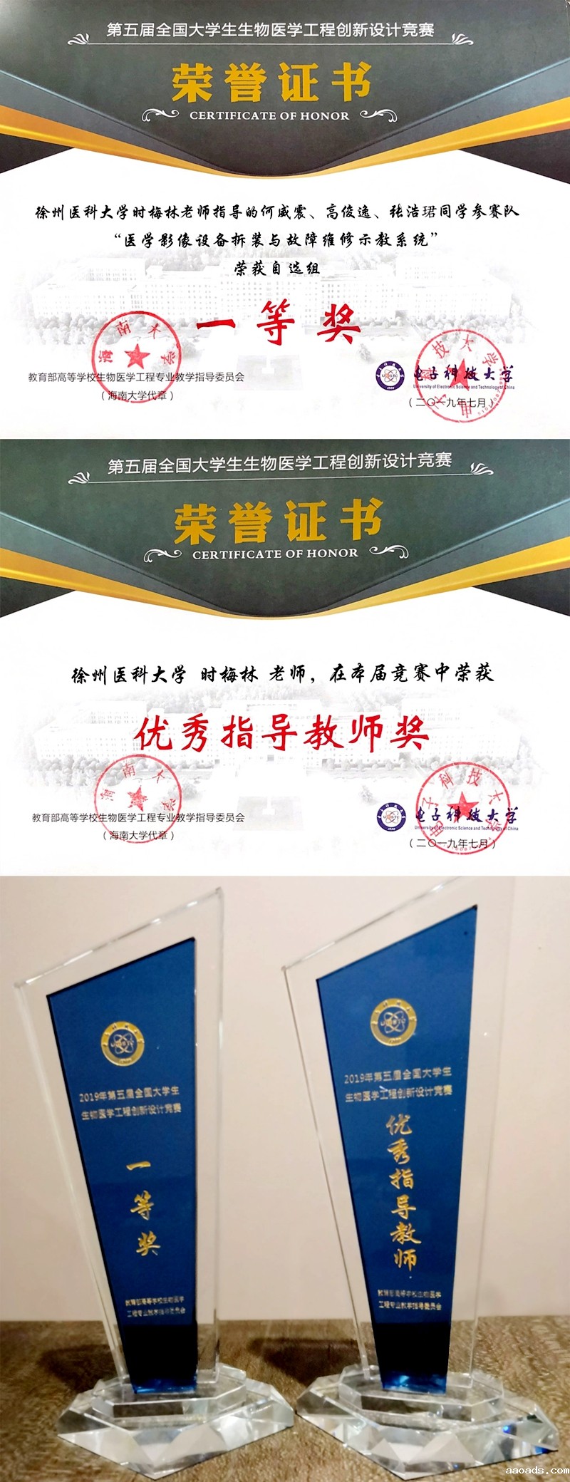 8月1日,第五届全国大学生生物医学工程创新设计竞赛决赛在电子科技大学举行,来自全国47所高校的127支队伍入围决赛。我校医学影像学院时梅林副教授指导何威震、高俊逸、张浩珺三位同学的参赛项目《医学影像设备拆装与故障维修示教系统》荣获一等奖,时梅林副教授荣获优秀指导教师奖。