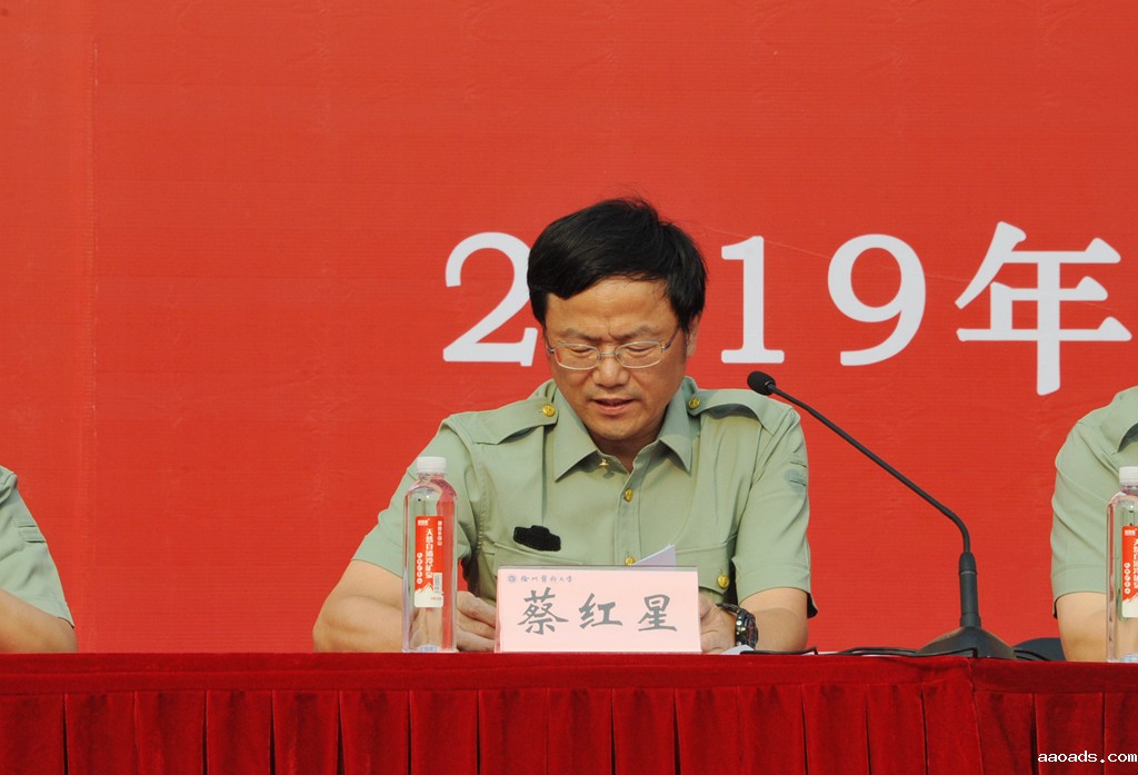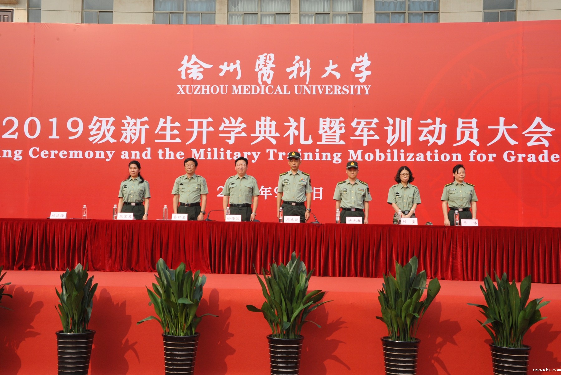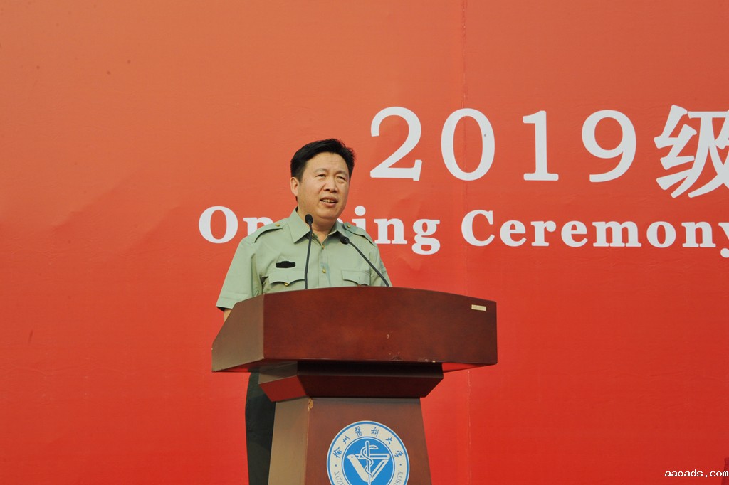 副校长、军训旅旅长蔡红星同志代表学校党委宣读《关于2019级学生军事技能训练和军事理论教学工作的通知》。党委副书记、副校长、军训旅政委徐海波同志作军训动员报告。他以我校优秀学长盛睿芳巡航亚丁湾,服务亚非各国人民,被誉为“中国妈妈”的故事讲起,号召广大新生热爱国防、积极投入军事训练,学好医学专业知识,并在祖国需要的时候,积极投身国防事业。他要求同学们做到坚决服从命令,一切行动听从指挥,从思想上、行动上都以军人的标准严格要求自己。他希望教官同志们充分发扬人民军队的优良传统和作风,运用掌握的知识和技能,高标准、严要求,精心施教,耐心示范,以情带兵,科学施训,创造性地做好这次军训工作。他要求全体学生工作者关心学生、爱护学生,了解学生的思想动态、身体状况和生活困难,有针对性地、创造性地开展工作,忠于职守、率先垂范,扎实做好新生军训工作。