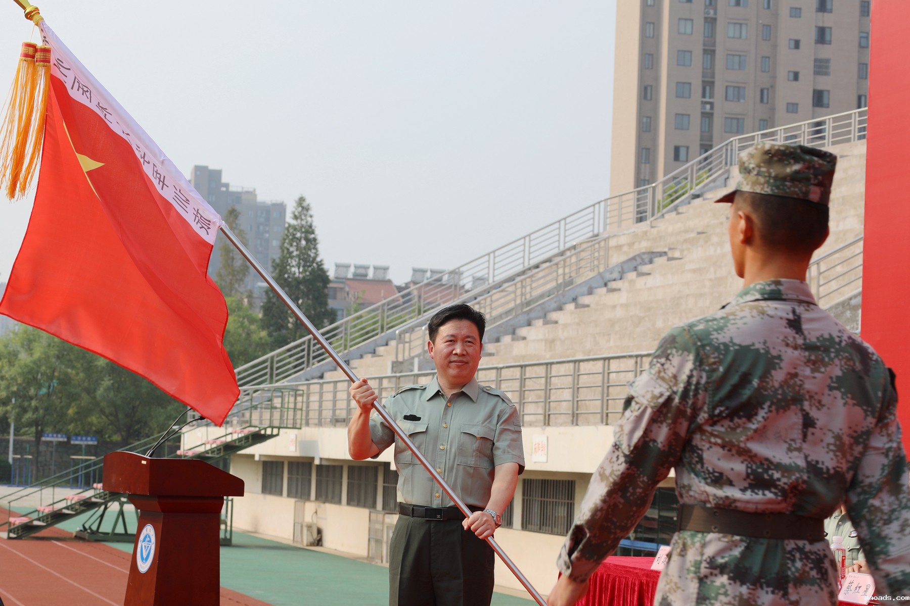 最后,徐海波副书记代表校党委向军训旅授军旗。在嘹亮的军歌声中,军训动员大会圆满结束。