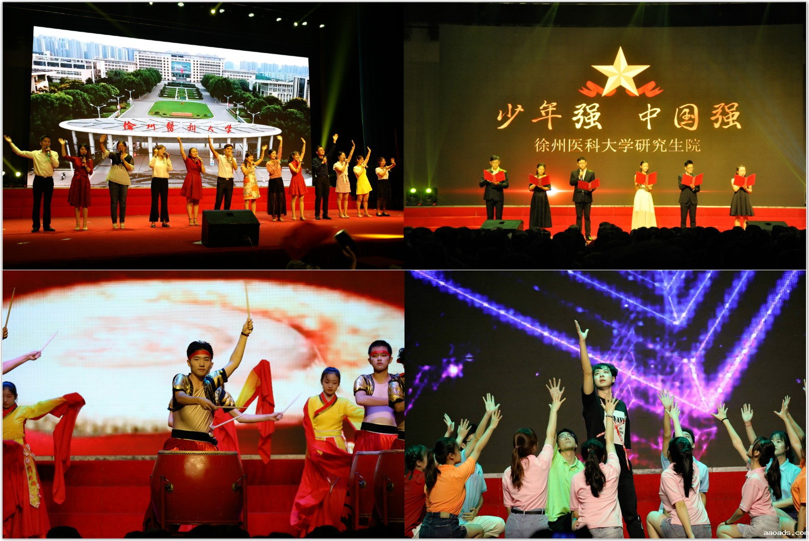 整场晚会分为“青春谣”、“军旅情”、“强国梦”三个篇章。麻醉学院、第二临床医学院、护理学院、医学信息与工程学院和公共卫生学院带来的合唱,表达出新生对大学生活的无限憧憬,铿锵有力的歌声激扬着青春的风采,宣告着对梦想的追求。肩负时代重任与使命,披荆斩棘,勇往向前,医学影像学院、口腔医学院与生命科学学院带来的合唱,唱出了新一届徐医青年们认真拼搏的精神。第一临床医学院、管理学院、药学院与医学技术学院的同学们,以高昂的热情、饱满的精神状态,高唱祖国赞歌,感染了在场所有人,激发了大家的爱国情怀,唱出了徐医学子对祖国的挚爱深情。经过激烈的比拼,医学技术学院、生命科学学院获得一等奖。