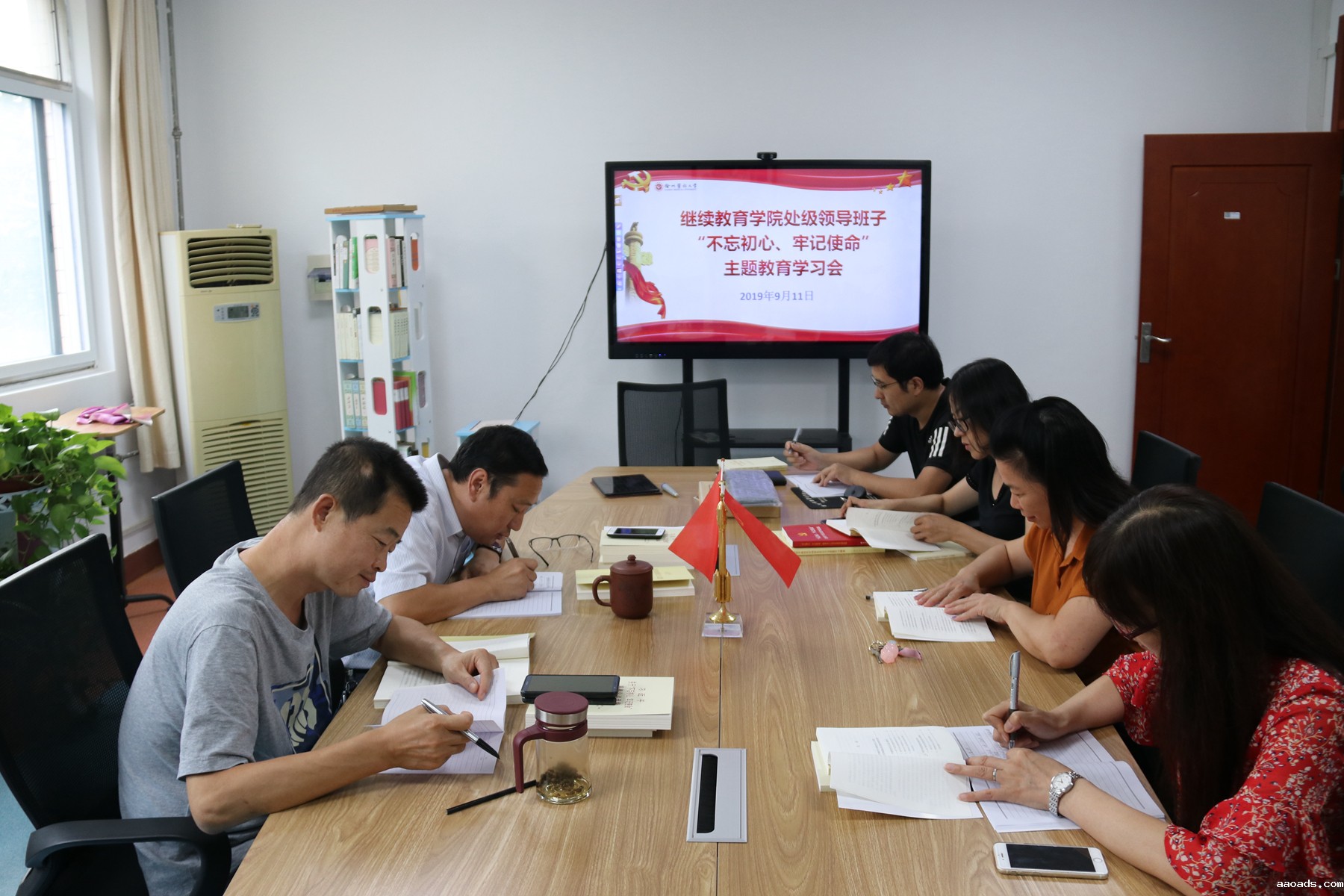 按照学校党委的统一部署,学校各二级党组织认真组织开展“不忘初心、牢记使命”主题教育。自9月11日起,学校处级领导班子开展5天的集中学习研讨,原原本本学习了《习近平关于不忘初心、牢记使命重要论述选编》、《习近平新时代中国特色社会主义思想学习纲要》等内容,理论学习后,又根据自己的学习体会和个人工作的实际,进行了深入研讨。非中共党员领导干部作为领导班子成员的,也主动参加主题教育,交流学习成果。