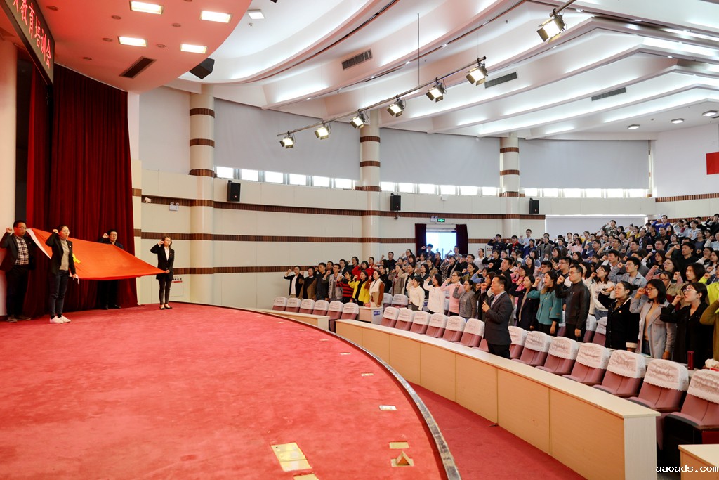 最后,校党委书记夏有兵带领新党员面向党旗,重温入党誓词。