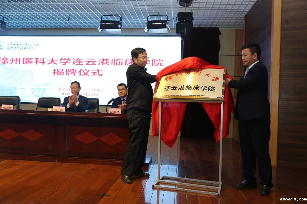 仪式上,蔡红星副校长与施辉院长完成印章交接。蔡红星副校长与张国桥副秘书长共同为伟德客户端下载安装手机版连云港临床学院揭牌。