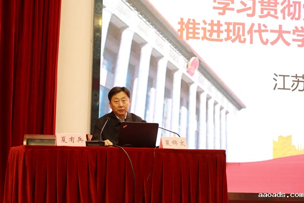 江苏省社会科学院党委书记、院长,十三届江苏省委委员夏锦文教授作了《学习贯彻党的十九届四中全会精神 推进现代大学治理体系和治理能力现代化》报告。他阐述了十九届四中全会的基本情况和重大意义,强调大学治理体系和治理能力是大学制度及其执行能力的集中体现,提出要以完善制度为核心,推进大学治理体系建设;以健全治理体系为支撑,促进大学治理能力提升;运用法治思维、法治方式,推动大学治理现代化。南京工业大学党委书记芮鸿岩教授结合党的十九届四中全会精神、习近平总书记系列讲话精神,从中层干部的基本要求、角度定位、治理能力三个方面作了《承上启下 协调左右 推进大学治理能力现代化》主题报告。