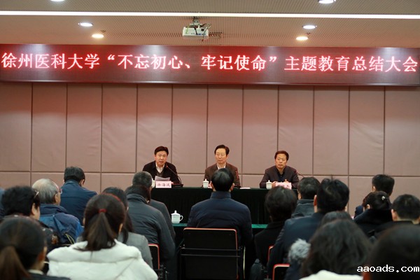 校党委书记夏有兵作主题教育总结报告,对学校主题教育工作成效、经验启示以及存在问题进行全面总结,对加强不忘初心、牢记使命制度建设进行部署安排。他要求全校各级党组织、广大党员干部巩固主题教育成果,坚持立德树人根本任务,自觉践行新发展理念,聚焦党的建设与内涵式发展主线,守正创新、接续奋斗,努力开创建设特色鲜明、国内先进高水平医科大学的新局面,为服务“健康中国”、建设“强富美高”新江苏作出新的更大贡献!