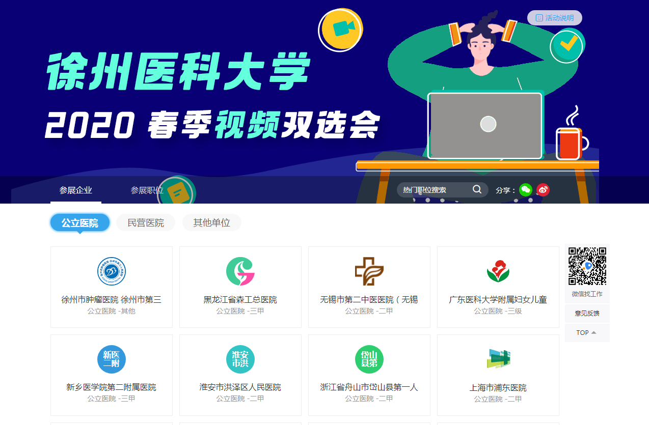 2020年伊始,新冠肺炎疫情的暴发给高校毕业生求职应聘工作带来了影响,本次招聘会为用人单位和毕业生搭建了更为有效的网络沟通平台,提供了更为精准的就业服务,得到了省内外各级医药卫生单位的积极响应。上海市松江区卫生健康委员会、湖州市卫生健康委员会、启东市卫生健康委员会三个卫生系统,复旦大学附属中山医院厦门医院、江苏省人民医院宿迁分院、上海市儿童医院、南京市中西医结合医院、伟德客户端下载安装手机版附属第三医院、浙江大学医学院附属第四医院、江苏恩华药业股份有限公司、艾昆纬医药科技(上海)有限公司、正大天晴药业集团股份有限公司等225家用人单位参加,发布职位22416个,涵盖本科、硕士、博士各学历层次和医、理、工、管四个门类。我校2020届毕业生积极应聘,共投递简历数28055份。