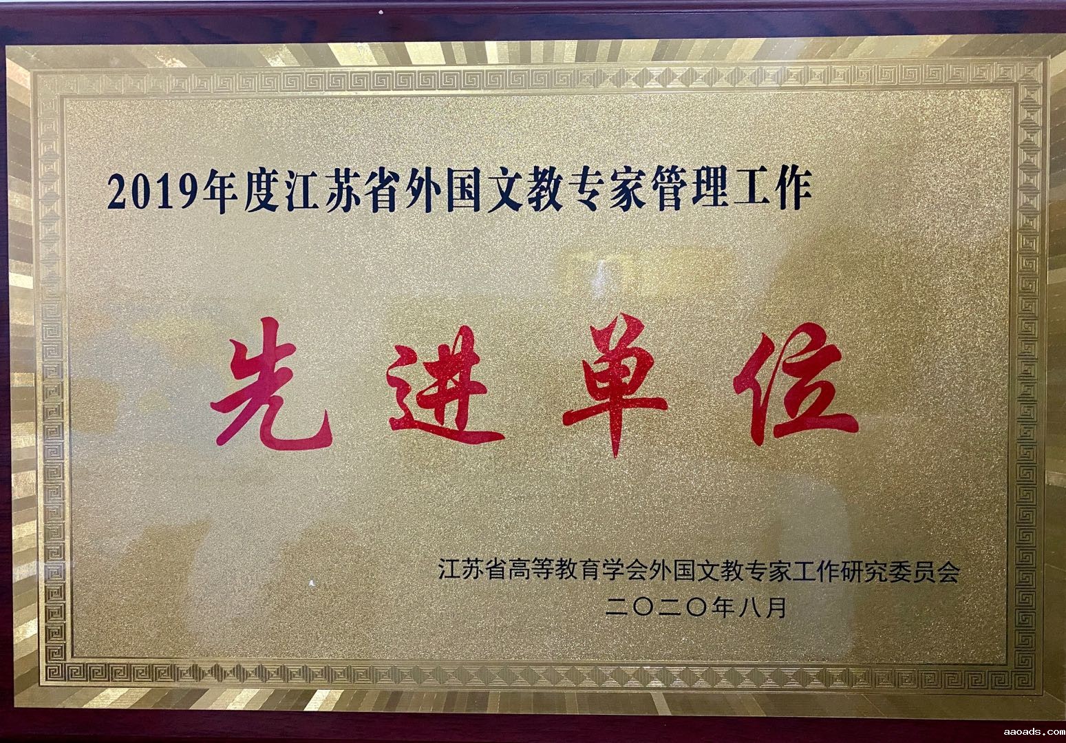 经研究会评选,我校荣获“2019年度江苏省外国文教专家管理工作先进单位”称号,吴怡同志被评为2019年度“江苏省外国文教专家管理工作先进个人”。