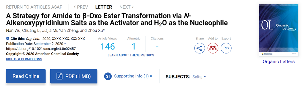论文链接:https://pubs.acs.org/doi/10.1021/acs.orglett.0c02457