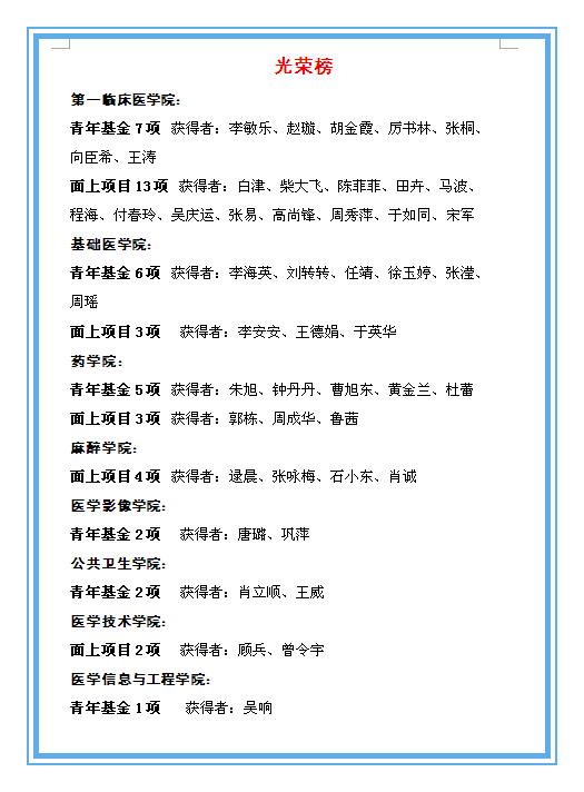 近年来,学校高度重视国家基金的申报和实施工作,不断加强顶层设计、完善制度建设、统筹各方资源,为广大科研人员营造了良好的科研条件和科研氛围。2019年,学校自9月份就启动了国家基金的申报动员工作,校科学技术处主动前往各家附属医院、临床学院进行调研、动员,有针对性地组织了申报培训活动,实现了申请书的三轮修改;邀请权威专家讲授课题设计和申请书撰写方法、资深项目负责人分享项目申请成功经验,并对质量较差的标书不予受理,从而有效提高了国家自然基金申请书的质量,大幅度提高了我校今年国家基金的受资助率。