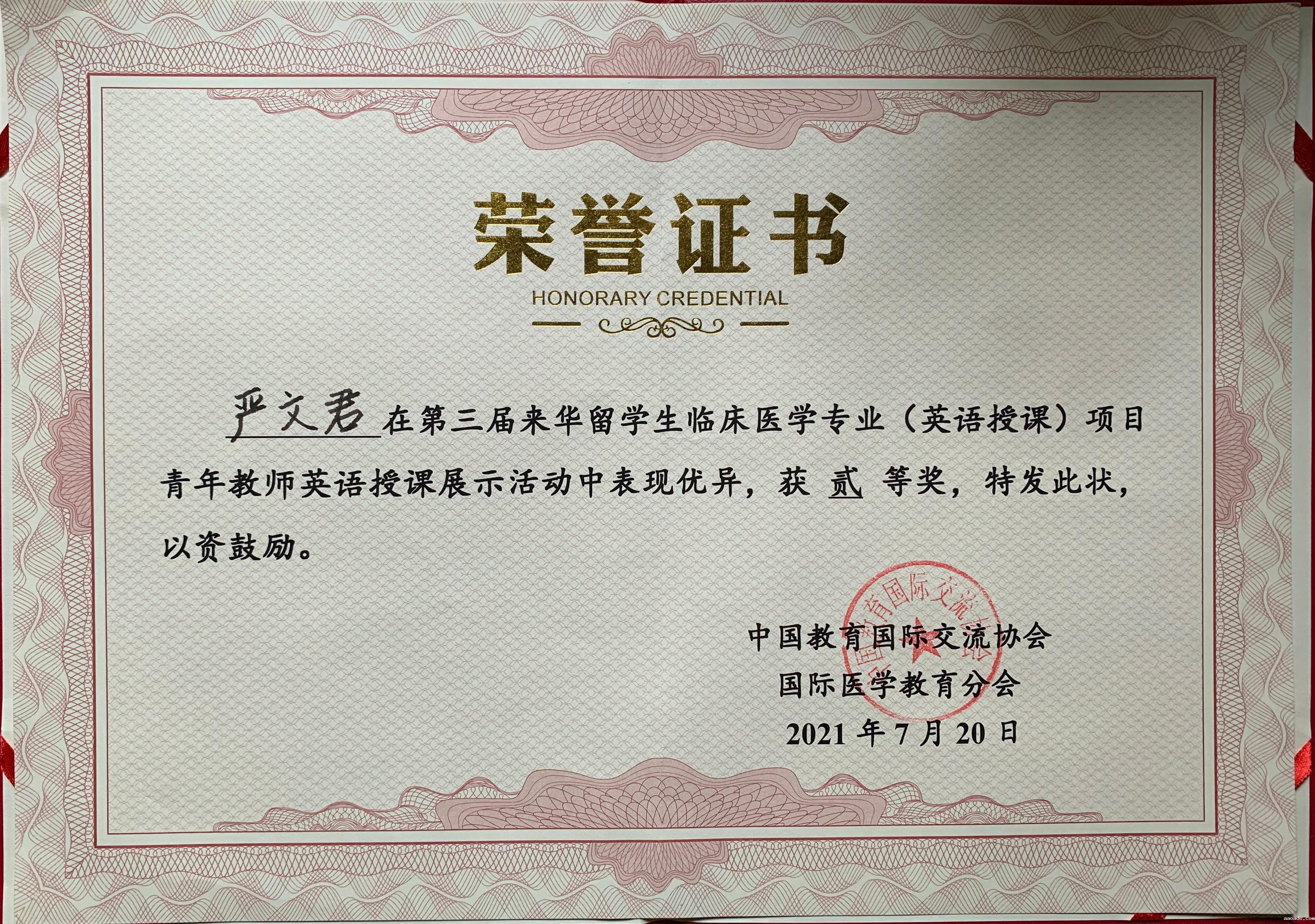 7月19日,由中国教育国际交流协会国际医学教育分会主办的“第三届来华留学生临床医学专业(英语授课)项目青年教师英语授课展示活动”在济南举办。参赛选手由来自从事来华留学生临床医学专业(英语授课)项目的全国45所院校精心选拔产生,代表了我国来华留学生临床医学专业全英语授课的最高水平。
