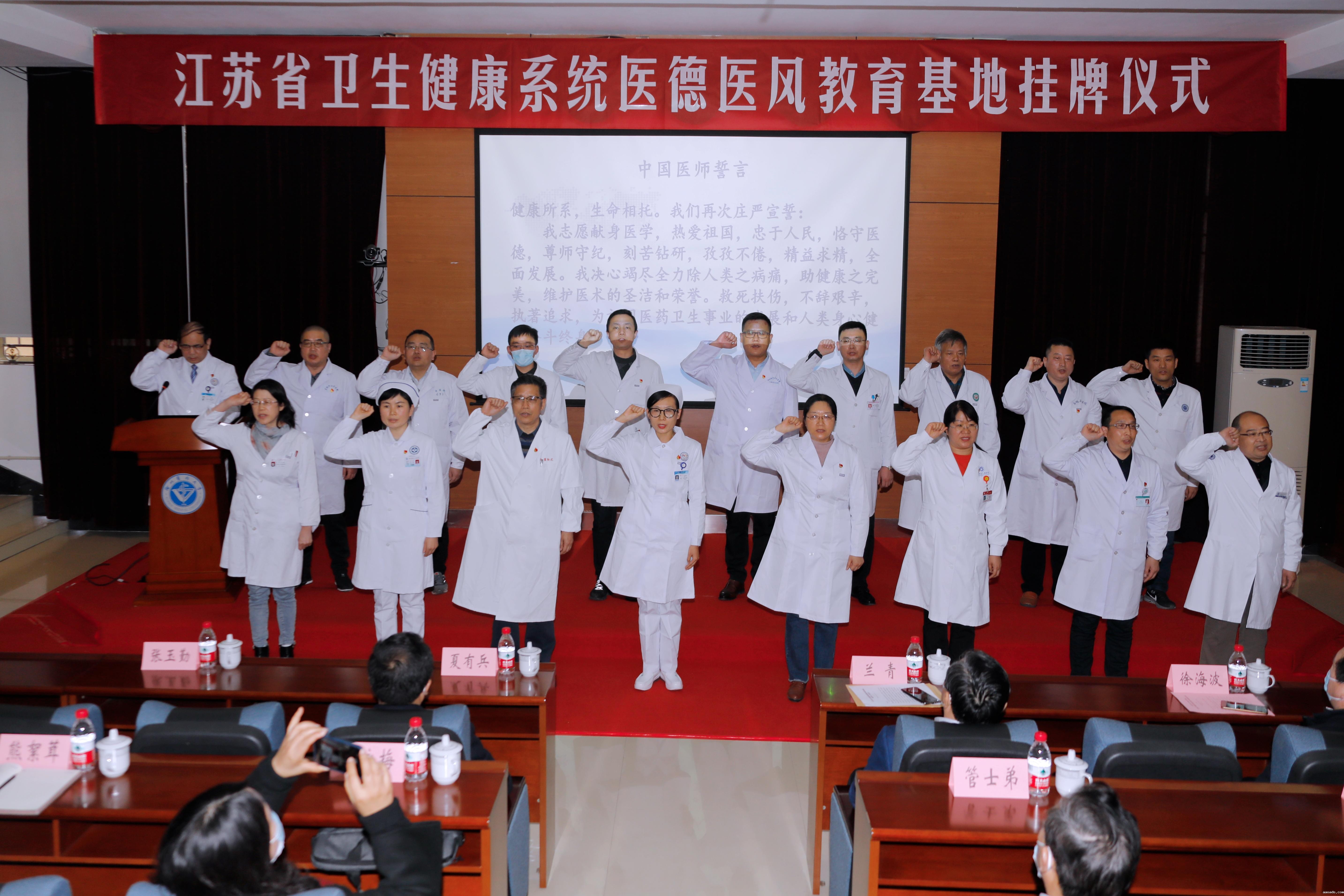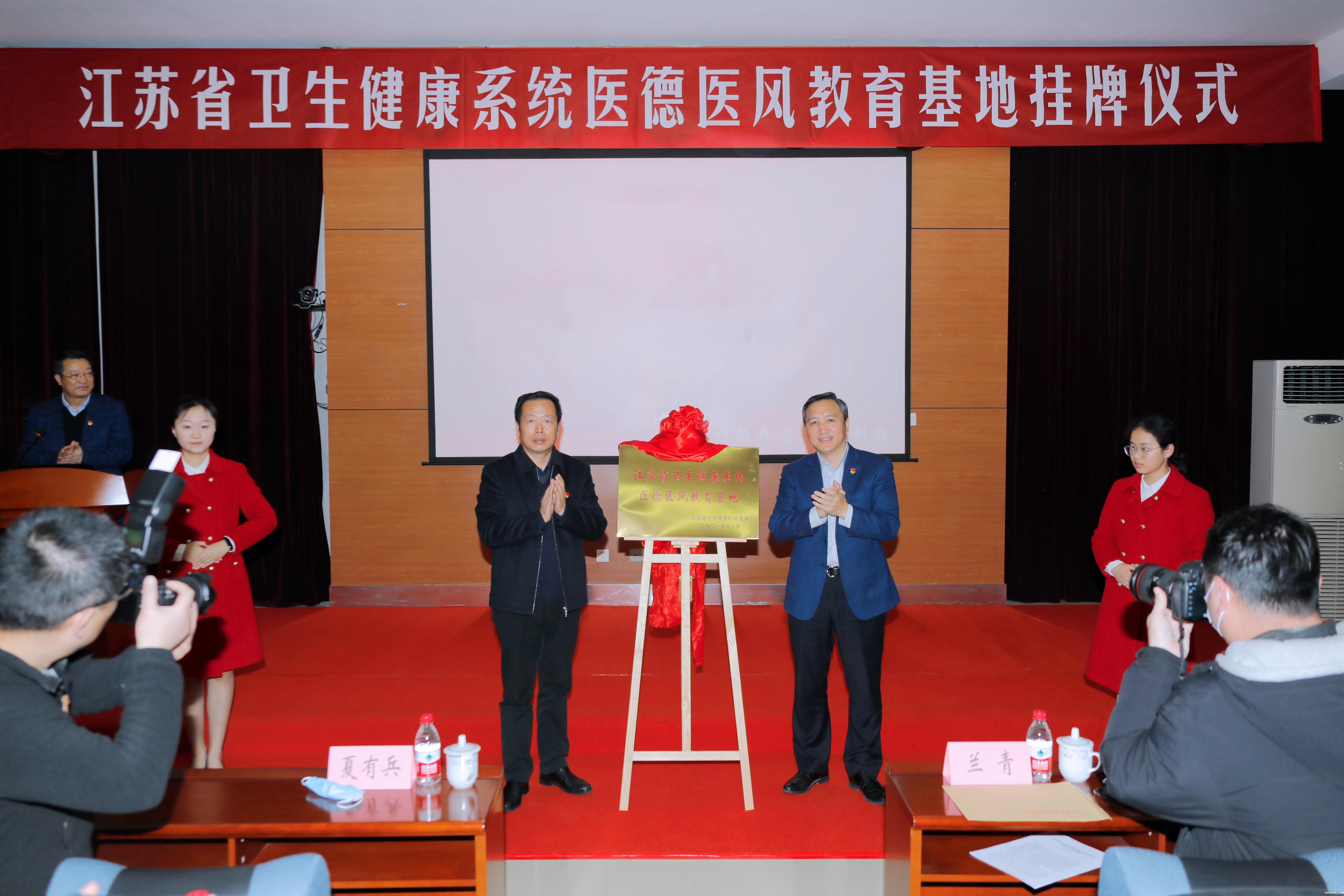 在大家的共同见证下,兰青副主任和夏有兵书记共同为江苏省卫生健康系统医德医风教育基地揭牌。
