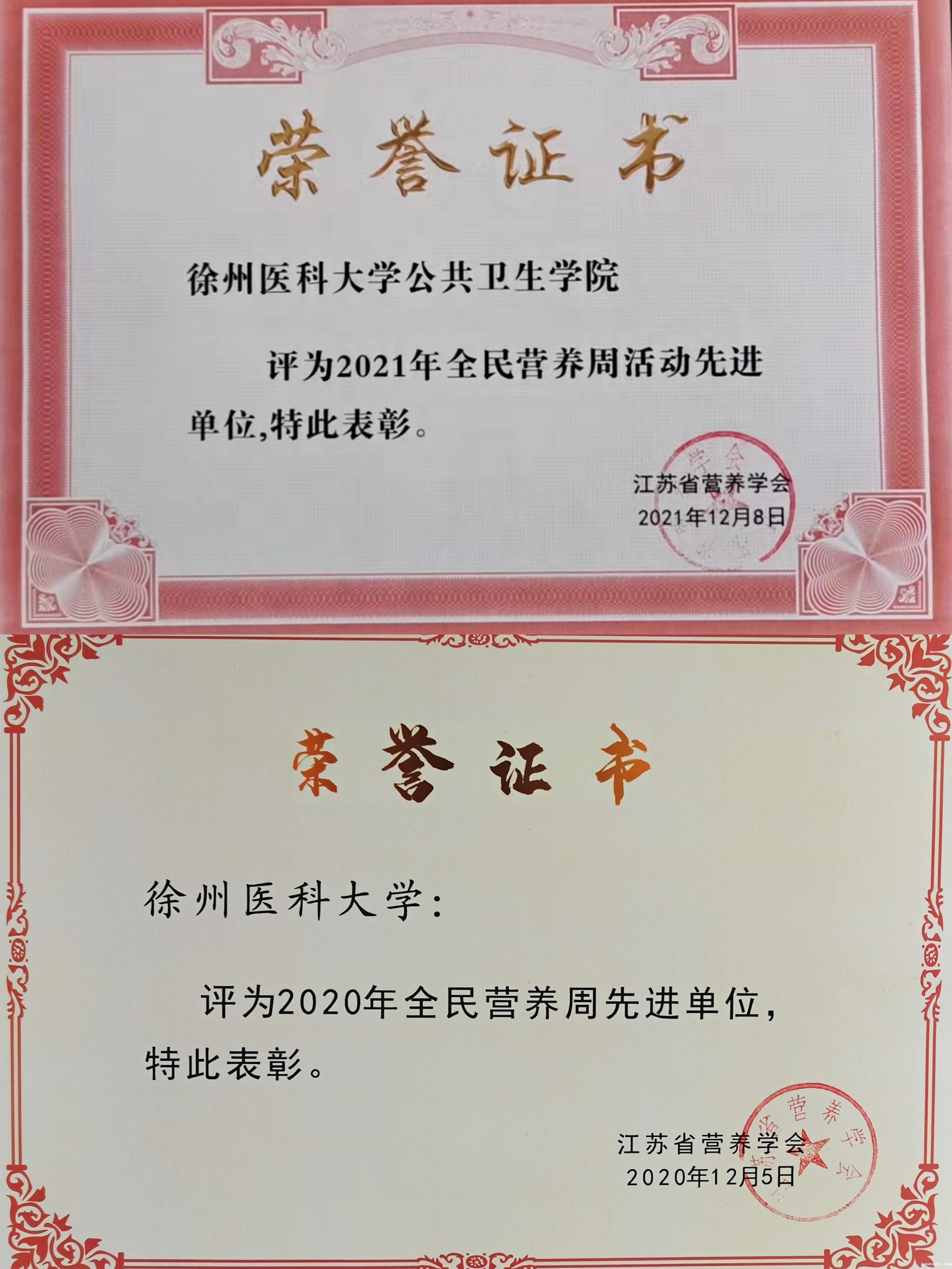 12月12日,江苏省营养学会理事会议发布对2021年全民营养周活动先进单位表彰的决定。凭借在2021年全民营养周活动中的突出表现,我校公共卫生学院斩获“2021年全民营养周活动先进单位”的荣誉,这也是我校连续四年获得此项荣誉。