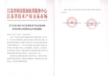 2021年12月31日,江苏省科技资源统筹服务中心、江苏省技术产权交易市场公布《2021年江苏省技术产权交易市场技术经理人事务所认定名单》,伟德客户端下载安装手机版科技园发展有限公司(以下简称科技园公司)正式获批江苏省技术产权交易市场技术经理人事务所。