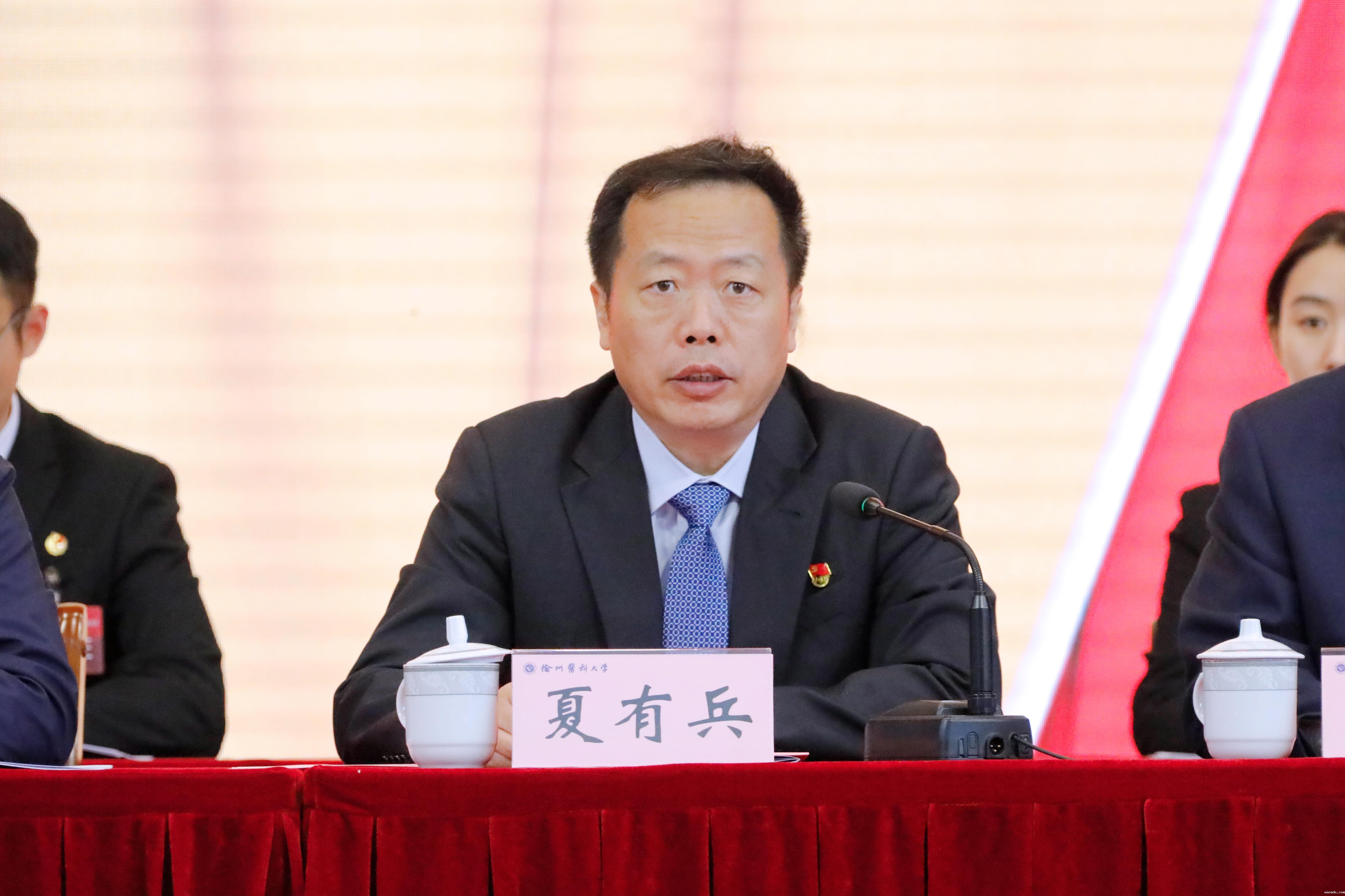 大会在庄严的国歌、团歌声中拉开序幕。夏有兵书记代表校党委对大会的召开表示热烈祝贺。他指出,此次大会是在全国上下喜迎党的二十大胜利召开、建团一百周年之际,全校师生认真贯彻实施“十四五”事业发展规划,全面推进高水平医科大学建设的关键时期召开的一次盛会。他充分肯定了共青团过去五年在思想引领、文化建设、创新创业和志愿服务等方面取得的工作成效,并向全校广大团员青年提出四点希望和要求:一是坚持理想信念,做胸怀祖国的奋斗者;二是坚持勤学善思,做勇攀高峰的开拓者;三是坚持锐意进取,做学校发展的助力者;四是坚持知行合一,做服务社会的践行者。他强调,全校各级团组织要紧密围绕共青团的根本任务、政治责任和工作主线,锐意进取,不断激发团组织生机活力。广大团学干部要进一步加强思想建设、能力建设、作风建设,把竭诚服务青年学生作为一切工作的出发点和落脚点。学校各级党组织要坚持以党建带团建,加强对共青团工作的领导,支持团学事业发展,倾听青年心声、关爱青年生活、助力青年成长。