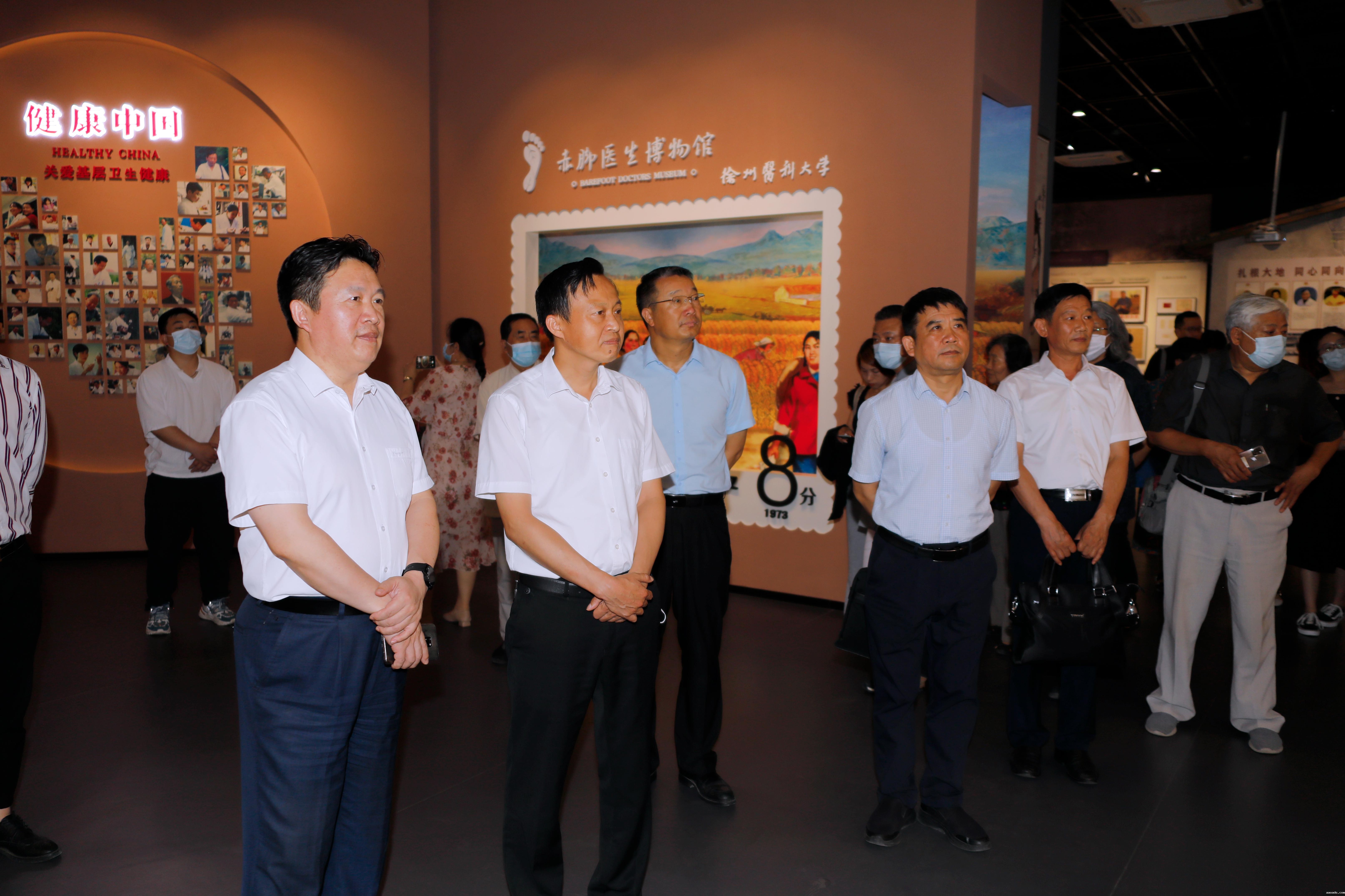 张玉勤在致辞中介绍了赤脚医生博物馆和我校办学的基本情况,赤脚医生博物馆被挂牌为徐州市社科普及基地,意味着赤脚医生博物馆从一座医学历史博物馆发展为一座能担当、示范、引领的社会科学教育阵地。赤脚医生博物馆将充分发挥各方优势,开展特色活动,打造社科普及教育精品,为更多徐州市民提供科普资源,让更多人了解我国基层医疗卫生事业的伟大成就。在与会人员的共同见证下,于法顺和徐海波代表双方单位为徐州市社科普及基地揭牌。随后,与会人员一起参观了赤脚医生博物馆,近距离感受赤脚医生的工作、生活场景。
