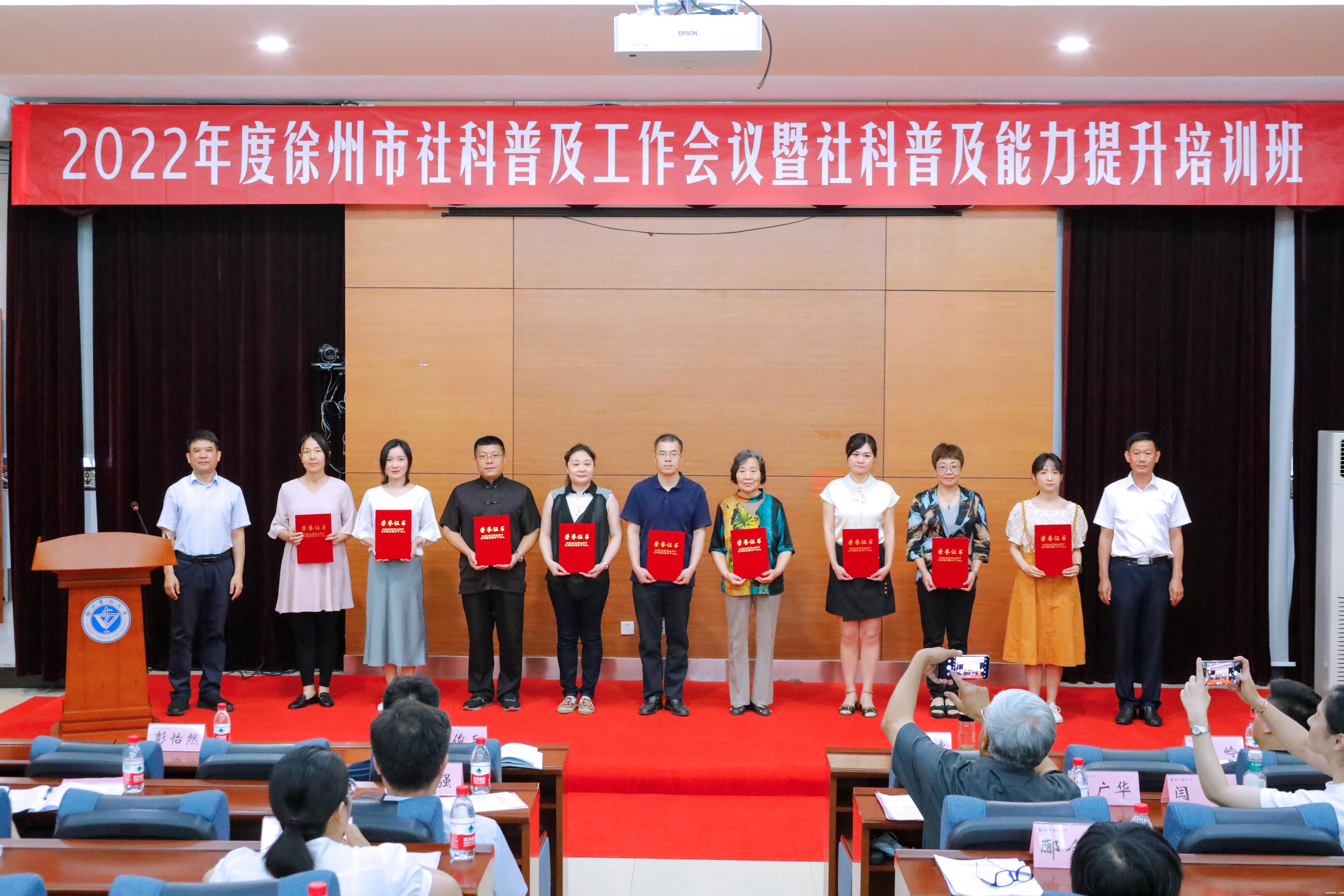 揭牌仪式结束后,徐州市社科普及工作会议暨社科普及能力提升培训班在行政楼101会议室举行,来自市内各家社科普及基地的40余位代表参加会议。会议表彰了徐州市2021年度社科普及先进集体和先进个人,并为新命名的社科普及基地授牌。会议还特邀了江苏省社科优秀青年、江苏省333高层次培养人才、苏州大学教授陈一,为与会人员进行了《善用新媒体,促进社科普及与文化传播》线上讲座培训。陈教授从准确把握中央的新要求、国家层面的响应与案例、媒体融合带来的新挑战、社科普及可以这样尝试、新时代的新理念五个方面详细分享了新媒体在社科工作中的重要作用与价值。