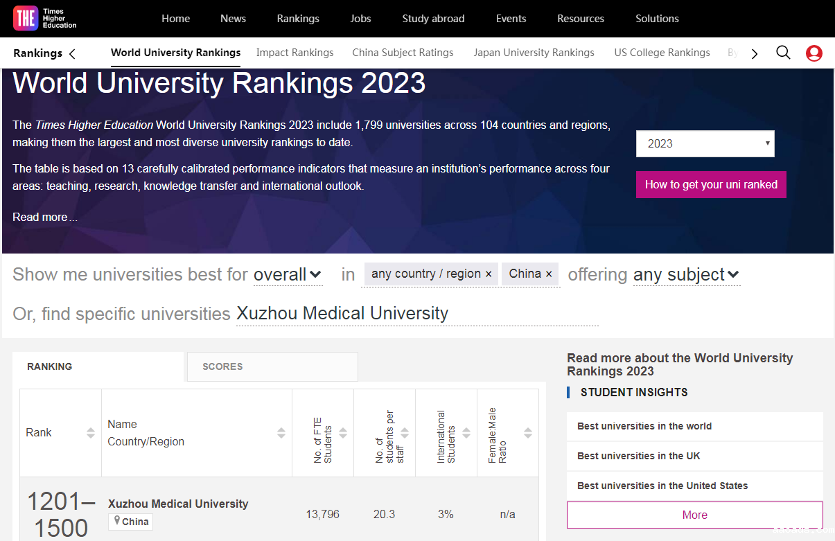 泰晤士高等教育世界大学排名(Times Higher Education World University Rankings),是由英国《泰晤士高等教育》(Times Higher Education,简称THE)发布的世界大学排名,与QS世界大学排名、U.S. News世界大学排名、软科世界大学学术排名公认为四大较为权威的世界大学排名。今年共有104个国家和地区的1799所大学上榜。