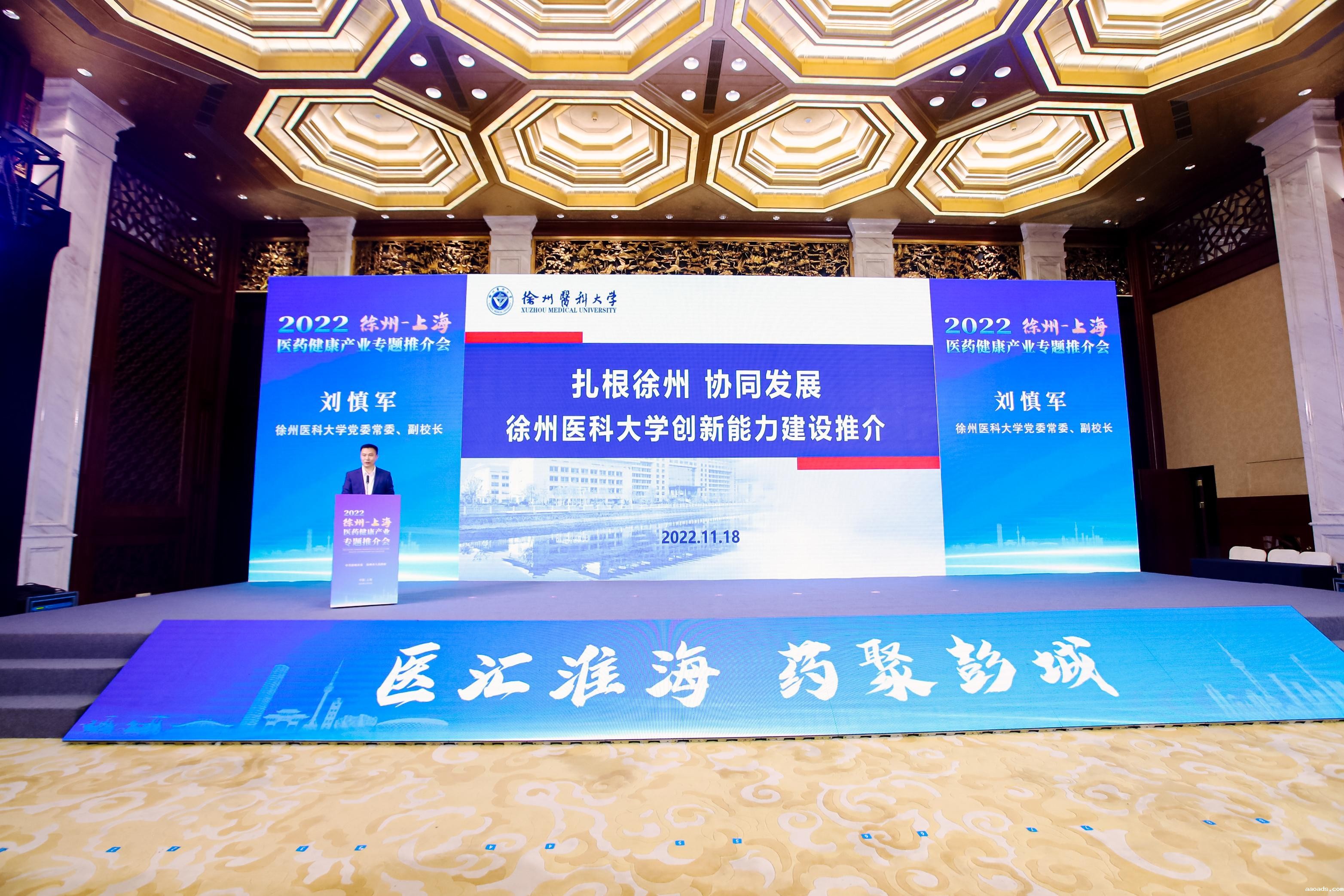 11月18日,2022徐州—上海医药健康产业专题推介会在上海举行,徐州市委副书记、市长王剑锋出席会议并致辞。校党委常委、副校长刘慎军应邀出席会议,肿瘤生物治疗研究所施明教授、资产经营有限公司相关人员参会。会议由副市长、铜山区委书记、徐州高新区党工委书记龚维芳主持。