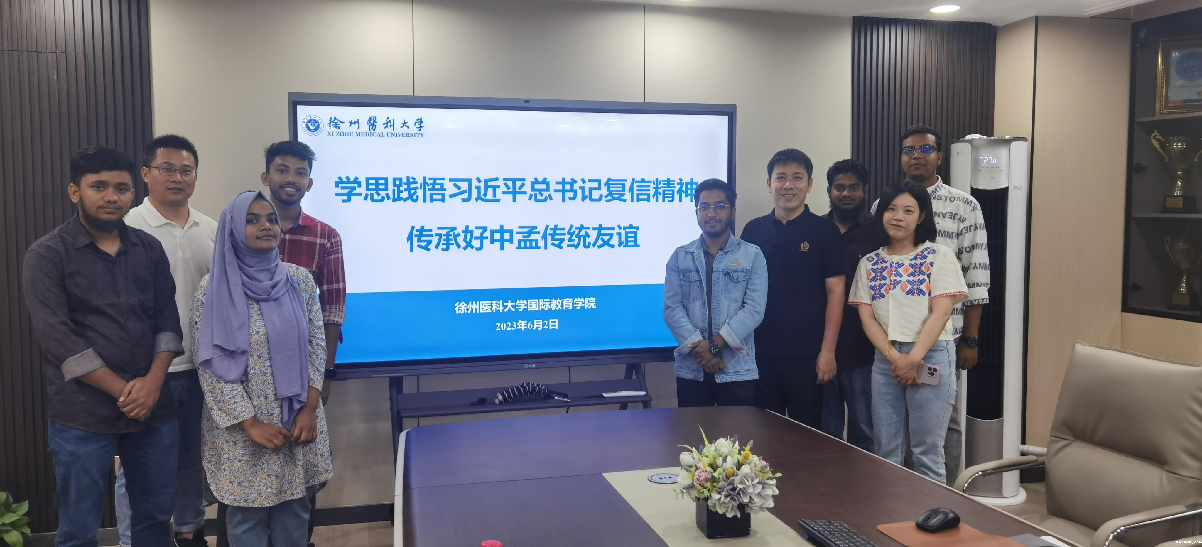 “习近平主席对沁的期望,也是我们奋斗的目标。沁立志长大后做中孟友谊的使者,未来也希望到中国学医,这些是我们作为孟加拉国同胞正在做着的事情,我们感到非常荣幸和骄傲。我们立志在伟德客户端下载安装手机版珍惜韶华、努力学习,实现梦想,报答家庭、社会和祖国,也希望能邀请沁将来到伟德客户端下载安装手机版学医。” 2021级本科临床医学专业留学生拉菲克尔分享了自己的感受。