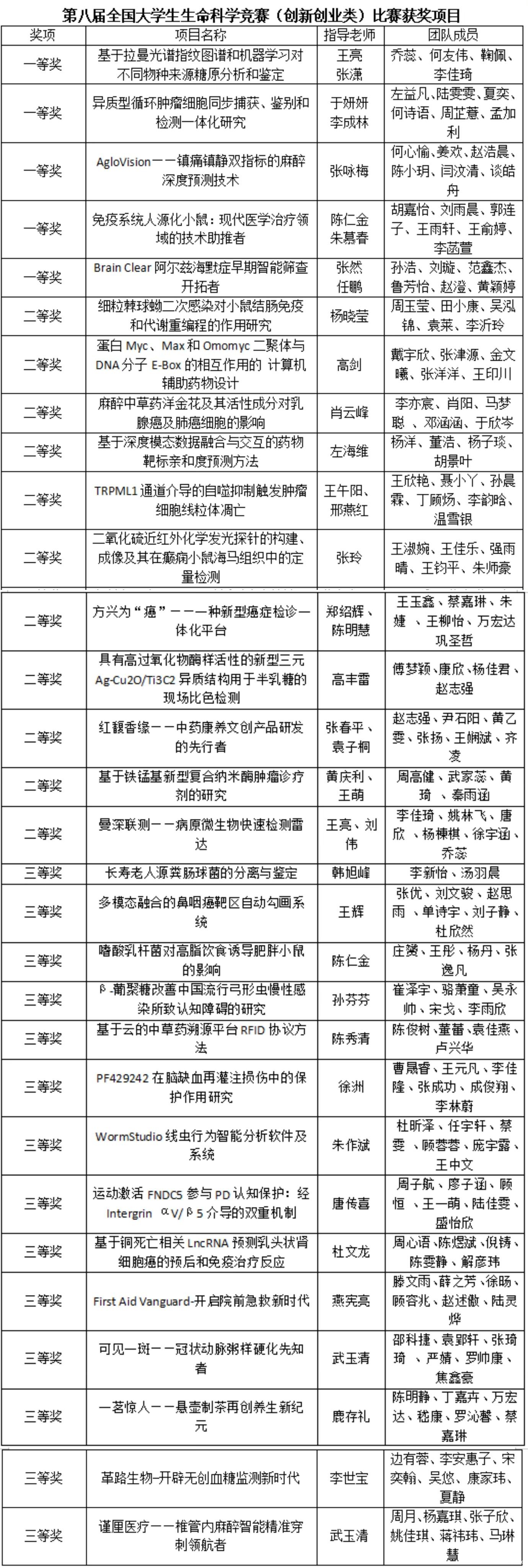 近日,第八届全国大学生生命科学竞赛落幕。该赛事分创新创业类和科学探究类两个赛道。其中,创新创业类共6117项作品参赛,我校获得一等奖5项,二等奖11项,三等奖14项;科学探究类共有来自562所高校的12069项作品参赛,我校获得一等奖2项,三等奖3项。