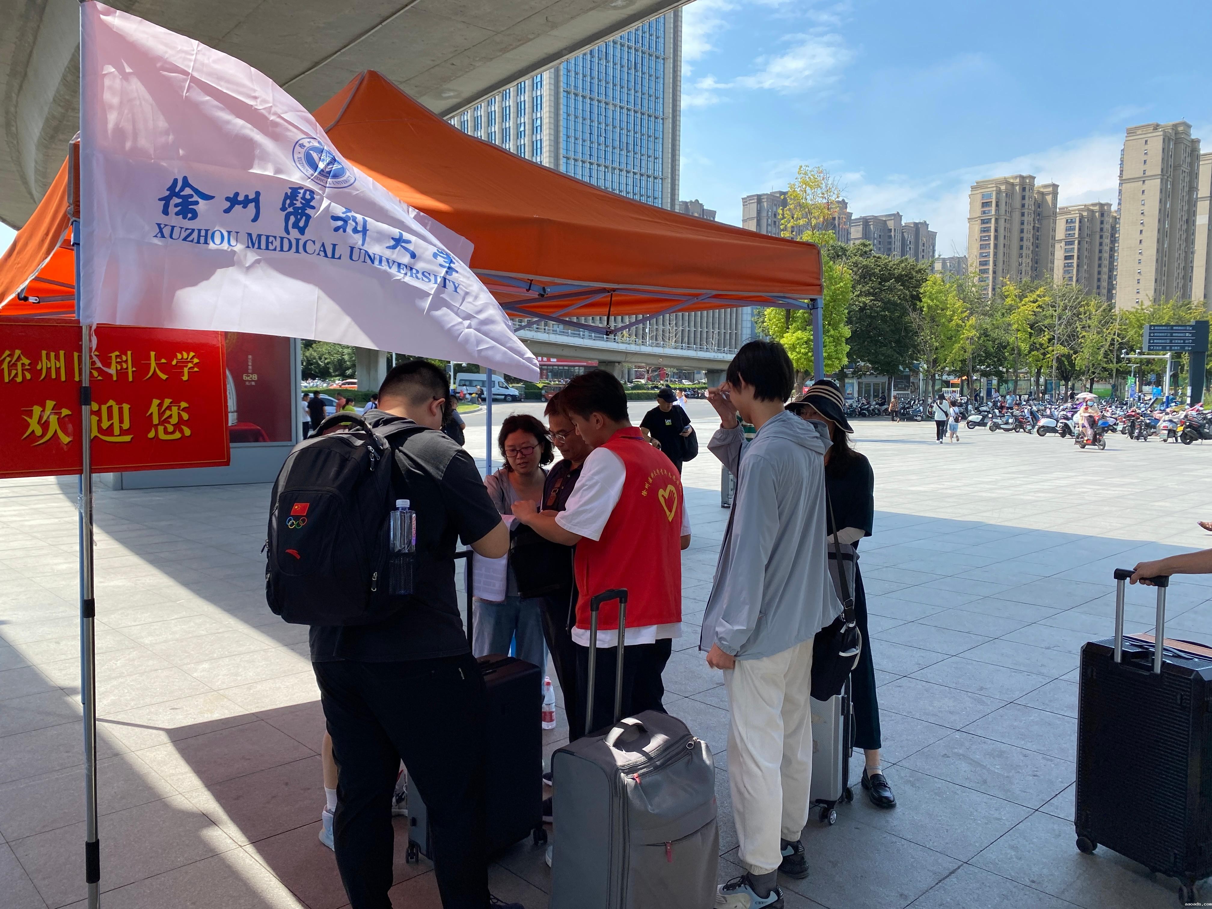 为了方便新生来校报到,学校在徐州火车站、徐州高铁站均设立迎新接待站,由老师和学生志愿者引导新生及家长乘坐学校提前安排的车辆抵达校园。另外,学校在各个大门口均有摆渡车接送步行学生及家长到达宿舍区。