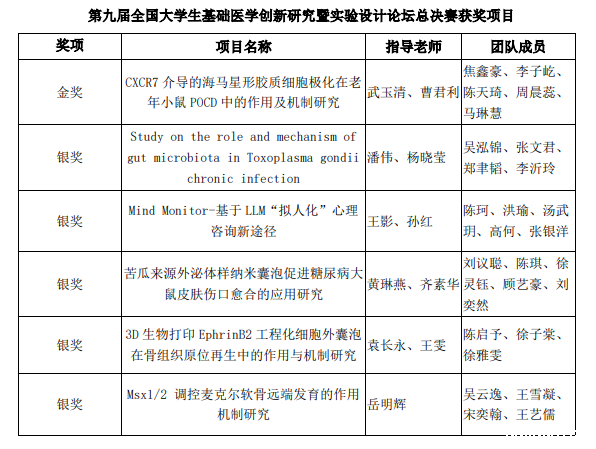 全国大学生基础医学创新研究暨实验设计论坛是我国基础医学领域最高级别的大学生学科竞赛之一,于2023年正式纳入全国普通高校大学生竞赛目录,大赛不仅考验学生创新能力和实验技能,更考验新医科建设背景下教师教育教学能力,对于加快推进医学教育创新发展,提高医学生培养质量具有重要意义。
