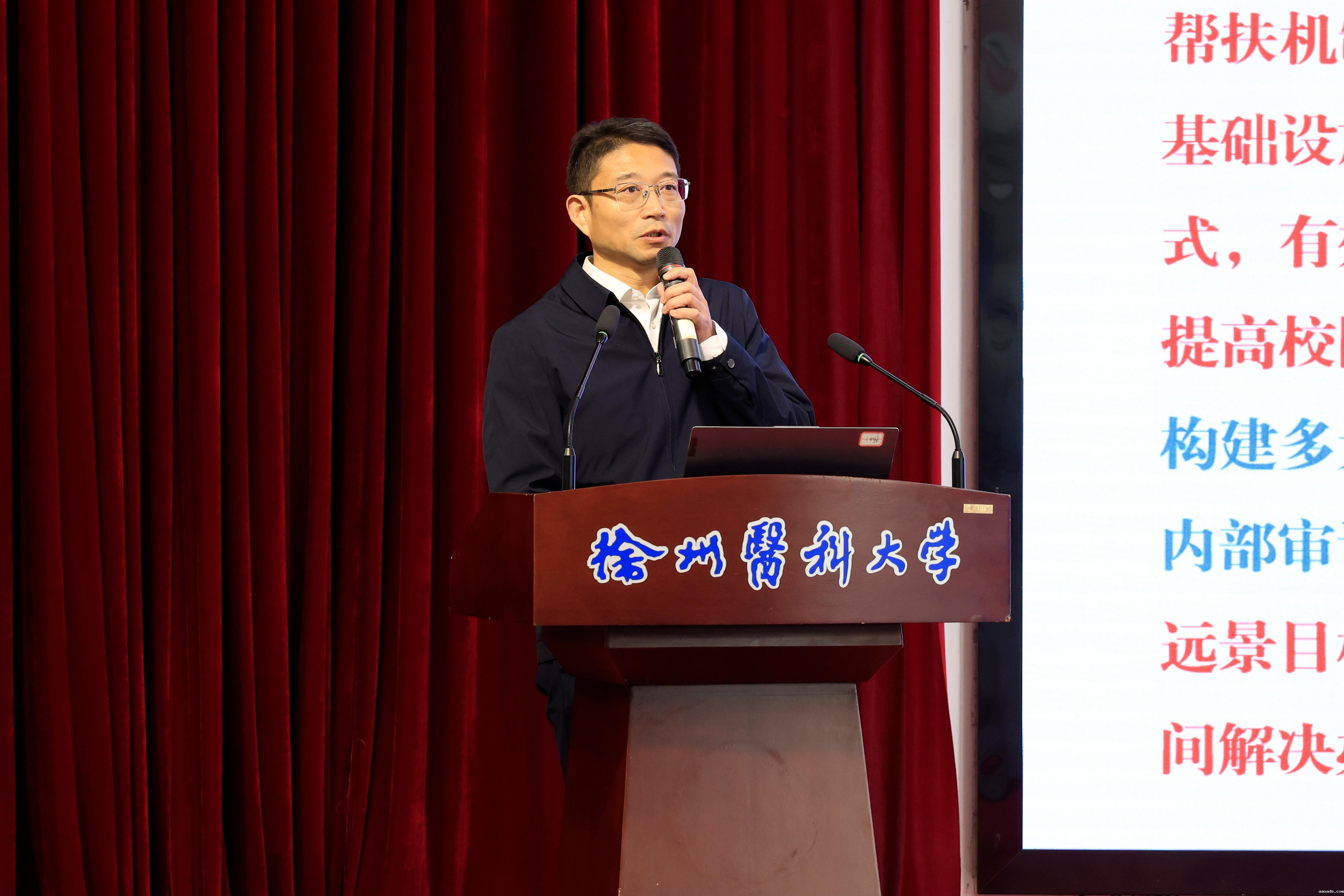 孙志明以“坚持以师生为中心的发展理念,更好地支撑和服务高水平医科大学建设”为题进行了宣讲。他指出,改善办学条件,建设有情怀大美徐医,要加强基础建设,深化“大后勤”服务理念,建设校园美食街,打造徐医师生的幸福“打卡地”;要围绕加强图书馆馆藏资源建设、信息化基础设施建设、资产管理顶层设计,尽快适应学校事业发展需要,不断提高资产管理和使用效能;要根据学校现有土地资源情况和规划布局,科学规划主校区、西校区功能定位,大力拓展学校办学空间。