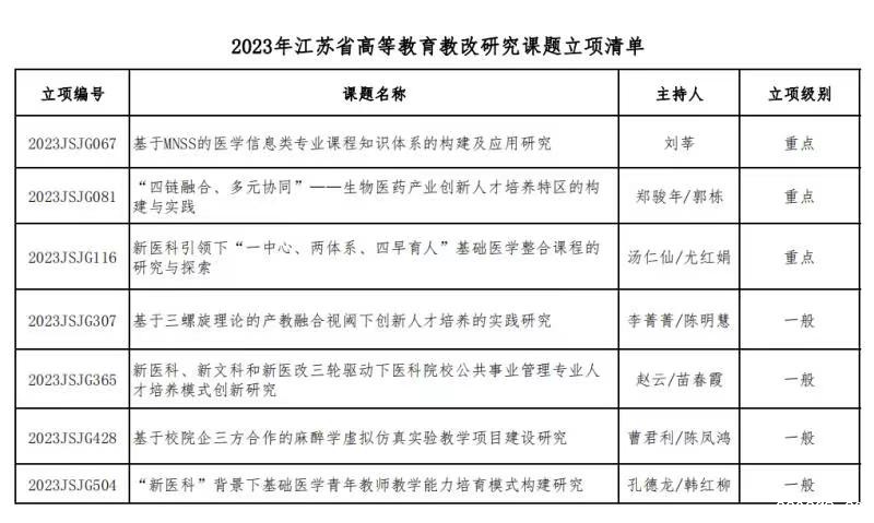 近日,江苏省高等教育学会公布了2023年省高等教育教改研究课题立项评选结果,我校有7项课题获准立项。其中重点课题3项、一般课题4项。