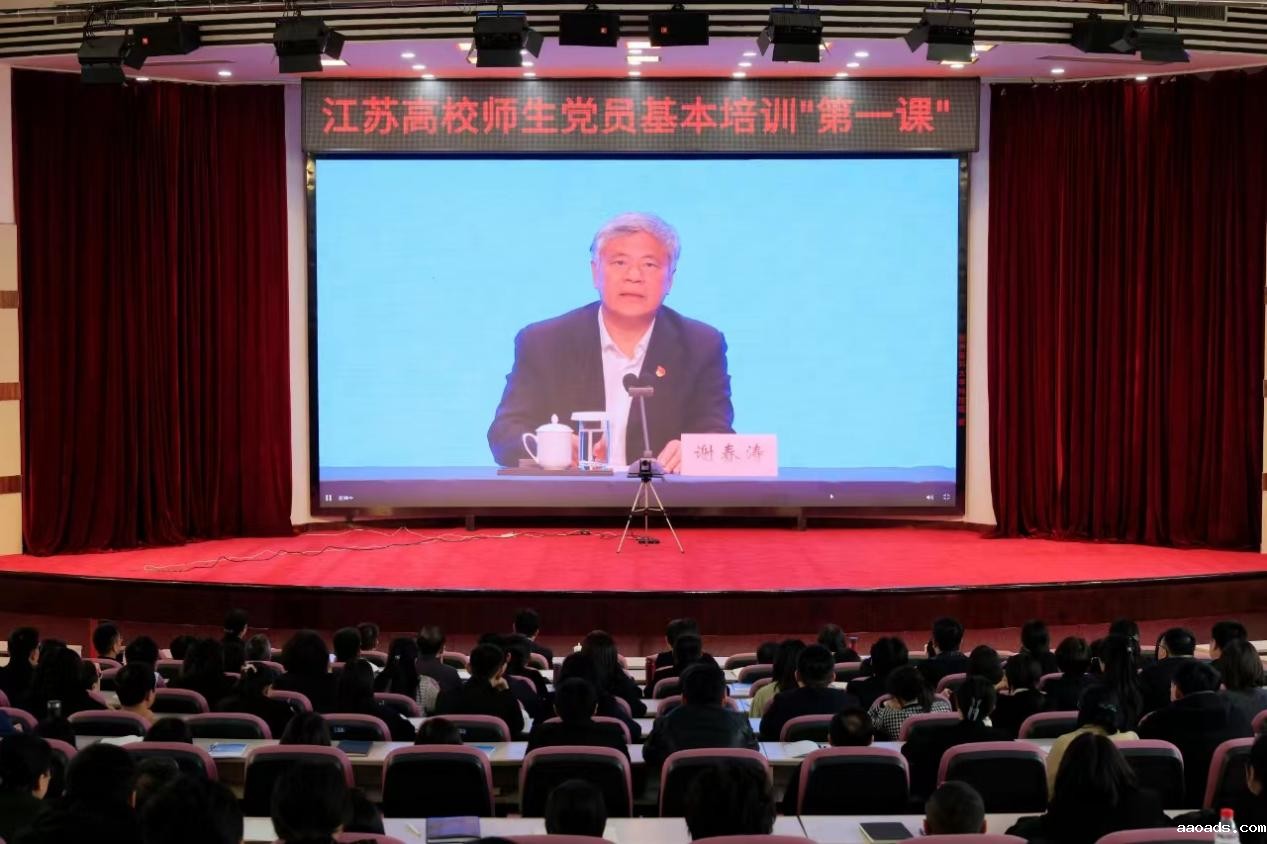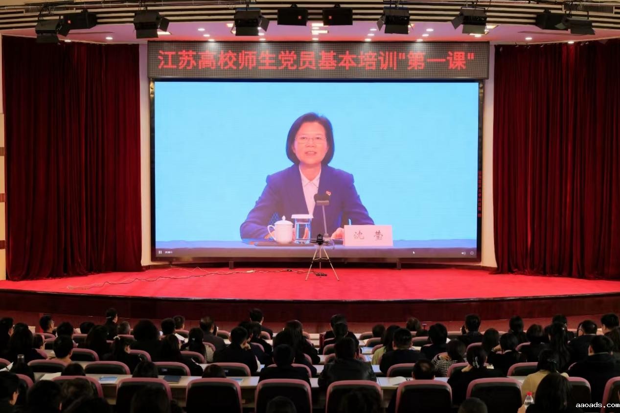 3月30日下午,江苏省委教育工委组织开展江苏高校师生党员集中培训“第一课”。二十届中央委员、中央党校(国家行政学院)分管日常工作的副校(院)长谢春涛以“中国共产党与中华民族伟大复兴”为题作专题辅导。省委副书记沈莹主持。校党委书记祝木伟,党委常委、组织部部长杜刚在南京大学主课堂参加培训,校领导班子其他成员和全校5000余名师生党员通过线上直播形式参加培训。