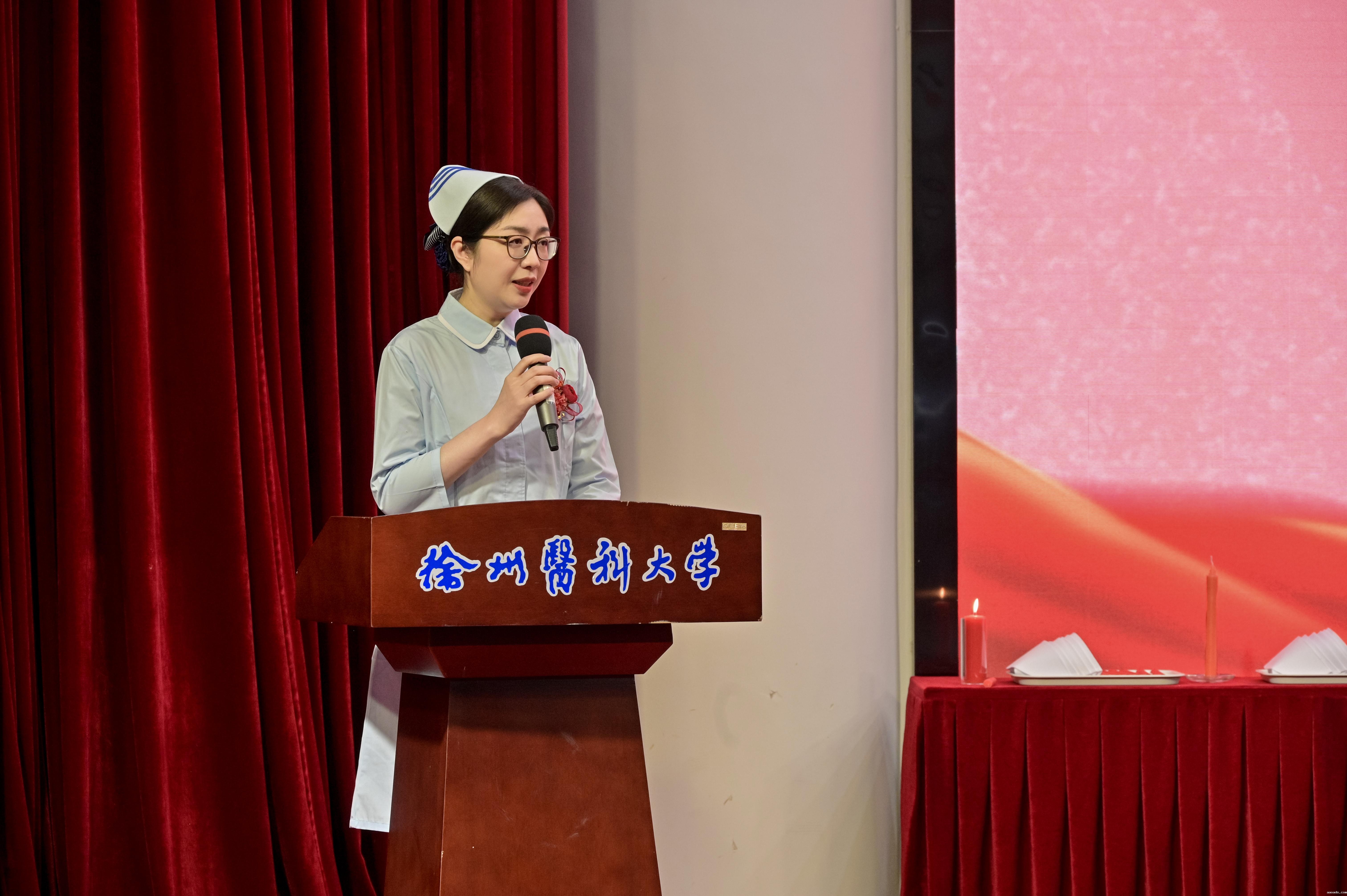 最后,王媛向参会师生致以节日的问候,强调护理工作是一项凝聚爱与奉献的工作,护理工作者是推进卫生健康事业发展的重要力量,回顾了近年来护理学院的发展与突破,并对即将踏上实习岗位的护生提出了殷切的希望:坚守职业信念,传承南丁格尔精神,做生命捍卫者和健康的守护神;牢记徐医校训,树立全生命周期服务的大健康观,成长为高素质的护理人才;将个人理想融入党和国家的事业中,为健康中国贡献徐医青年力量。