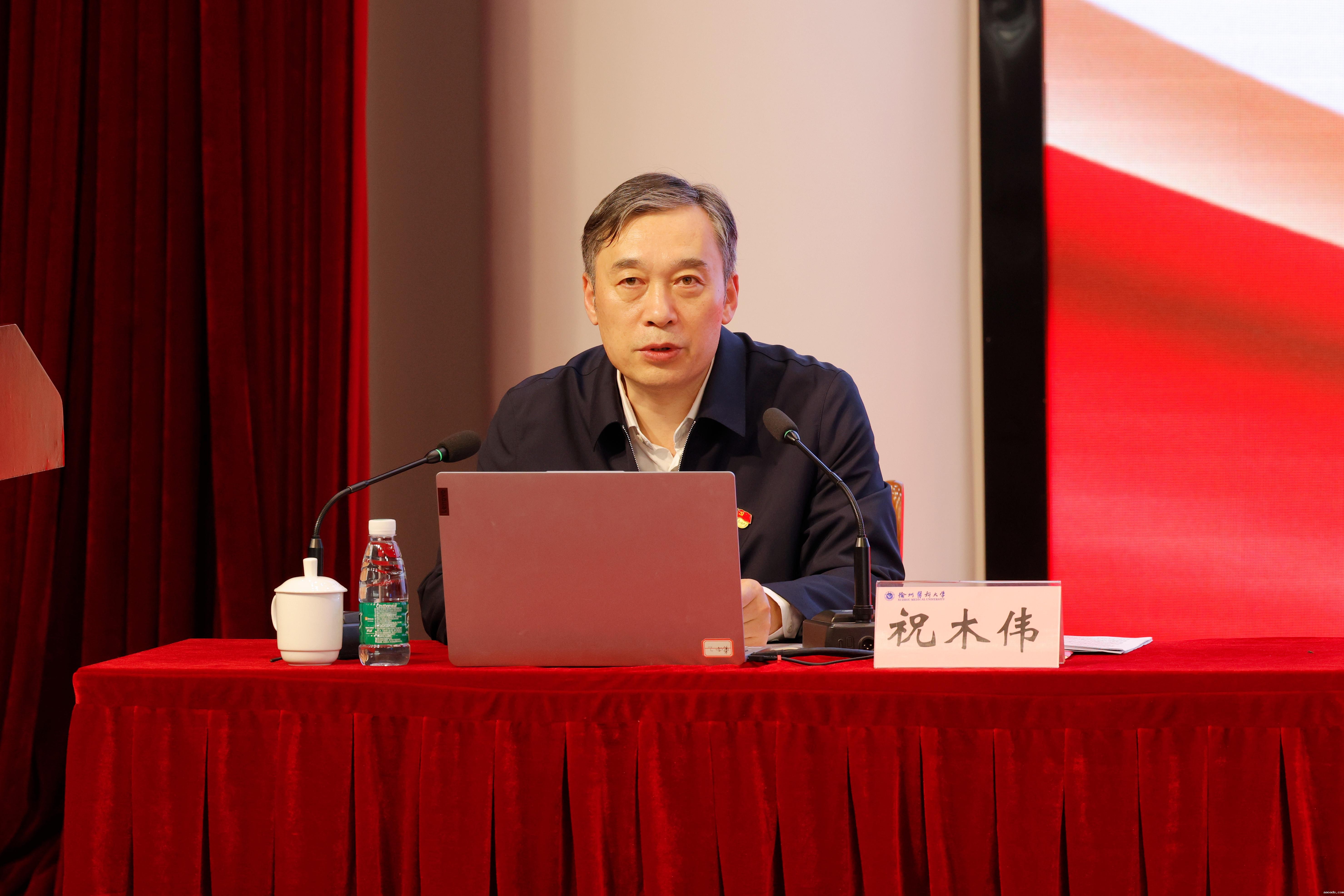 为深入开展党纪学习教育,4月24日下午,学校党纪学习教育专题读书班暨校党委理论学习中心组学习(扩大)会在主校区学术报告厅举行。校党委理论学习中心组成员、党员中层干部、各二级党组织班子成员参加了本次学习。党委书记祝木伟作辅导报告,党委副书记、副校长徐海波主持学习。