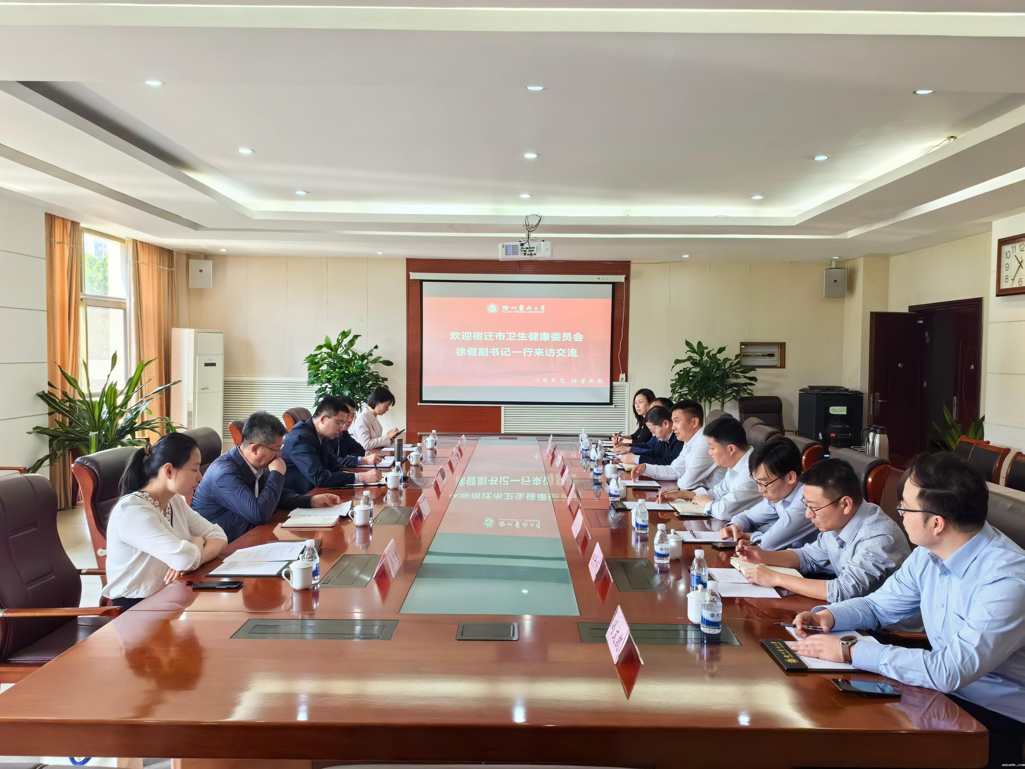 5月10日上午,宿迁市卫生健康委员会副书记徐健一行5人莅临我校,就校地合作进行深入洽谈。校党委常委、副校长刘慎军主持会议,校办、合发处、人事处、教务处、科技处、资产公司等相关部门负责同志出席会议。