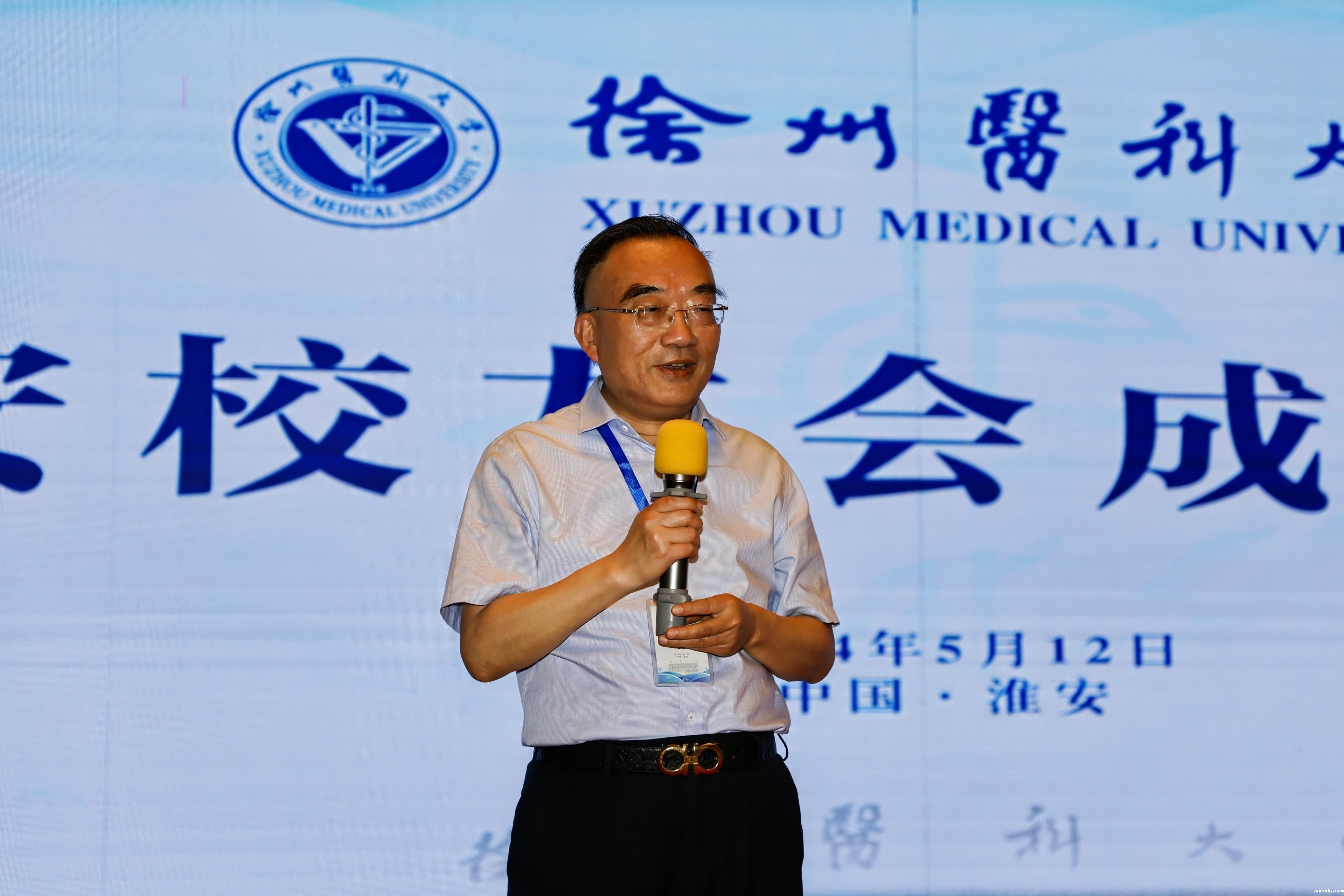祝木伟在讲话中,回顾了学校办学的历史,介绍了近年来学校取得的成绩,代表学校向各位校友赤诚奉献和鼎力相助表示感谢。他指出,校友是大学人才培养的最直接体现,是社会声誉和影响力的最有力支撑。他表示,在学校第二次党代会后,学校明确了建设“特色鲜明的高水平医科大学”目标,提出了更高水平打造“一中心一高地一校园”,以及建设有情怀大美徐医的目标任务,部署了未来五年“九高一化”提升行动。他强调,淮安是我校重要的生源基地和就业基地。淮安校友会的成立给在淮安的校友搭建了一个与学校联系的平台,一个校友相互联络、交流与帮助的平台。最后他希望淮安校友会大力加强自身建设,积极构建与母校发展的共同体;希望淮安校友情系母校,主动当好宣传母校成就、助推母校发展的活的名片,“常系母校动态”“常回母校看看”“常叙团结情谊”;希望淮安校友永葆医学初心,努力在维护人民健康的道路上奋勇担当、积极作为,为学校“建设特色鲜明的高水平医科大学”的目标建言献策、贡献力量。