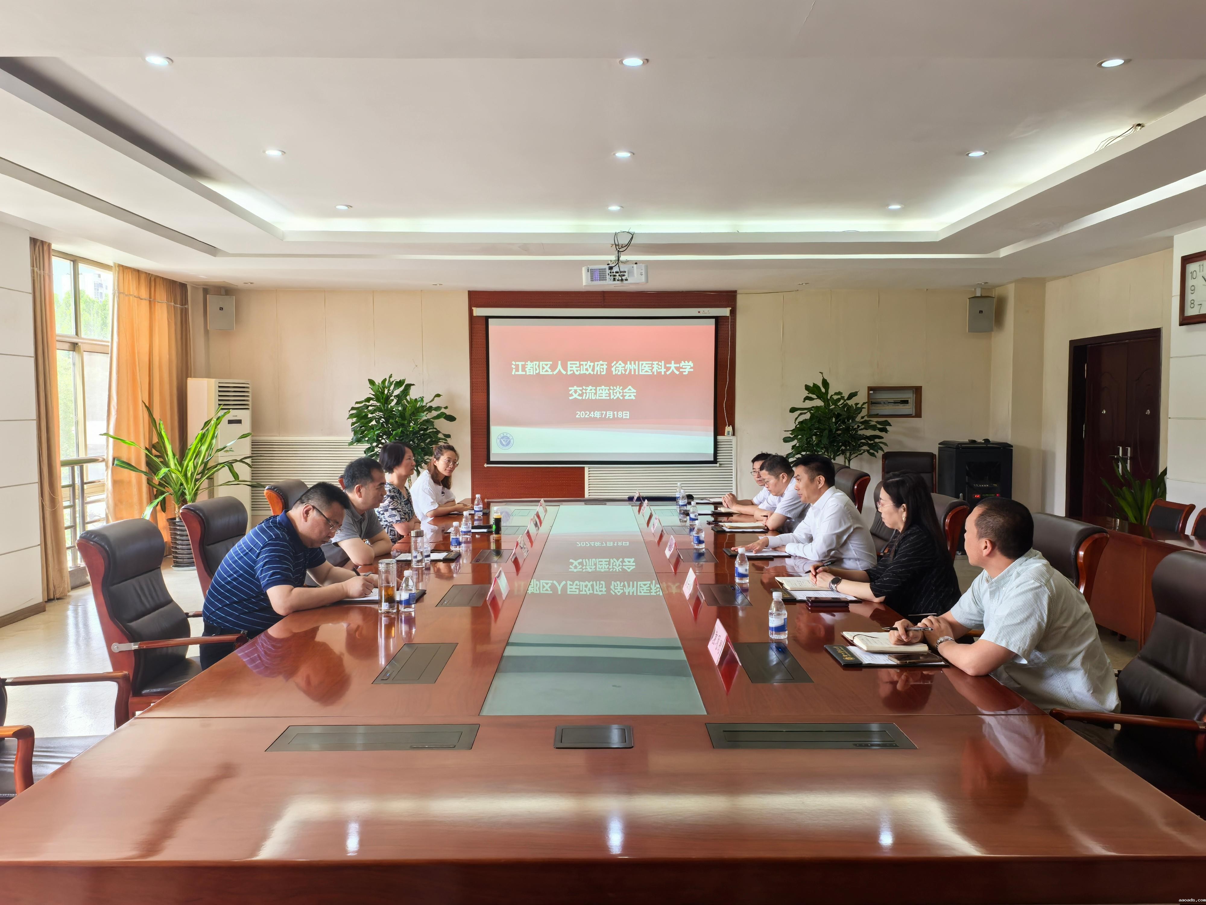 7月18日上午,扬州市江都区人民政府陆德川副区长、扬州大学附属江都人民医院党委书记陈志芳、副院长虞虎等一行4人来我校考察交流。校党委常委、副校长刘慎军,教务处、科技处、合发处等学校相关职能部门参加座谈会。