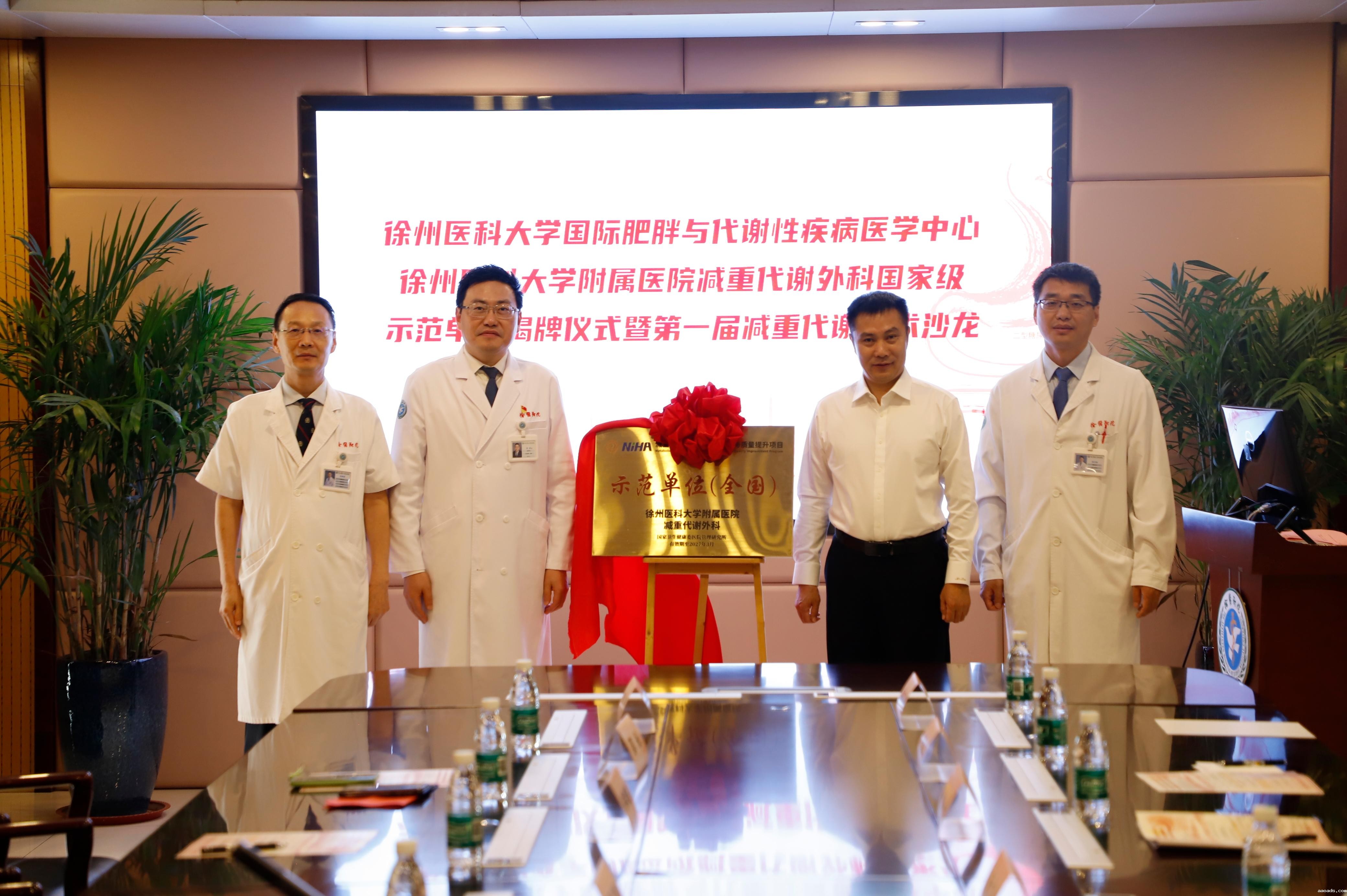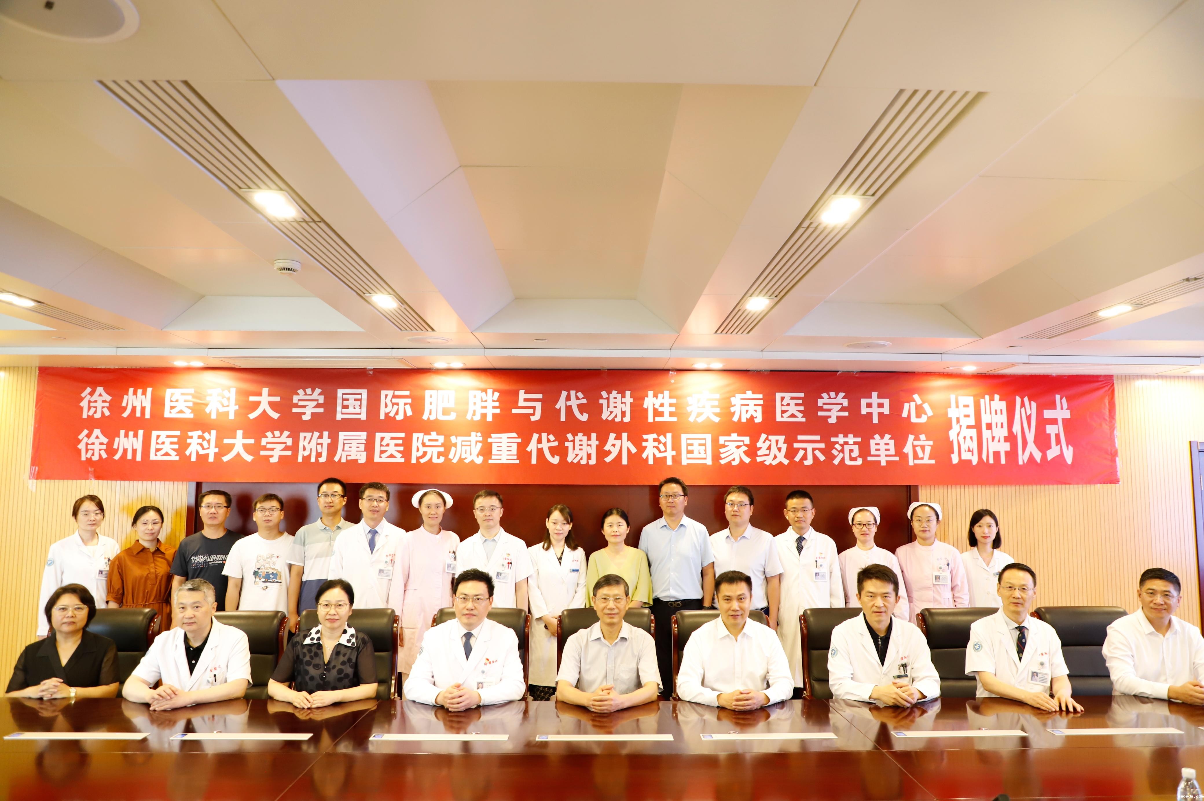 8月21日上午,伟德客户端下载安装手机版国际肥胖与代谢性疾病医学中心、徐医附院减重代谢外科国家级示范单位揭牌仪式暨第一届减重代谢学术沙龙举行。伟德客户端下载安装手机版党委常委、副校长刘慎军,伟德客户端下载安装手机版党委常委、副校长、徐医附院党委书记吕凌等共同为“伟德客户端下载安装手机版国际肥胖与代谢性疾病医学中心”和“徐医附院减重代谢外科国家级示范单位”揭牌。来自学校、附院和科室的各级领导、专家同道共30余人齐聚一堂,共同见证了这一历史时刻。揭牌仪式由徐医附院普外科副主任张斌主持。