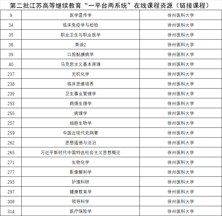 根据《关于征集第二批江苏高等继续教育“一平台两系统”在线课程资源的通知》要求,经继续教育学院组织申报、专家审核认定、结果公示,我校共有21门优质课程资源入选,并在江苏高等继续教育“一平台两系统”中开放共享。