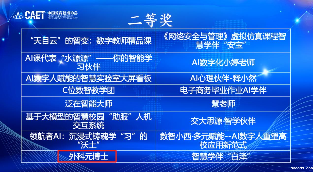 在近期落下帷幕的第二届“教育数字人大赛”中,我校“外科元博士”助学教育数字人在决赛中荣获二等奖。这一荣誉彰显了我校在教育数字化转型领域的创新。