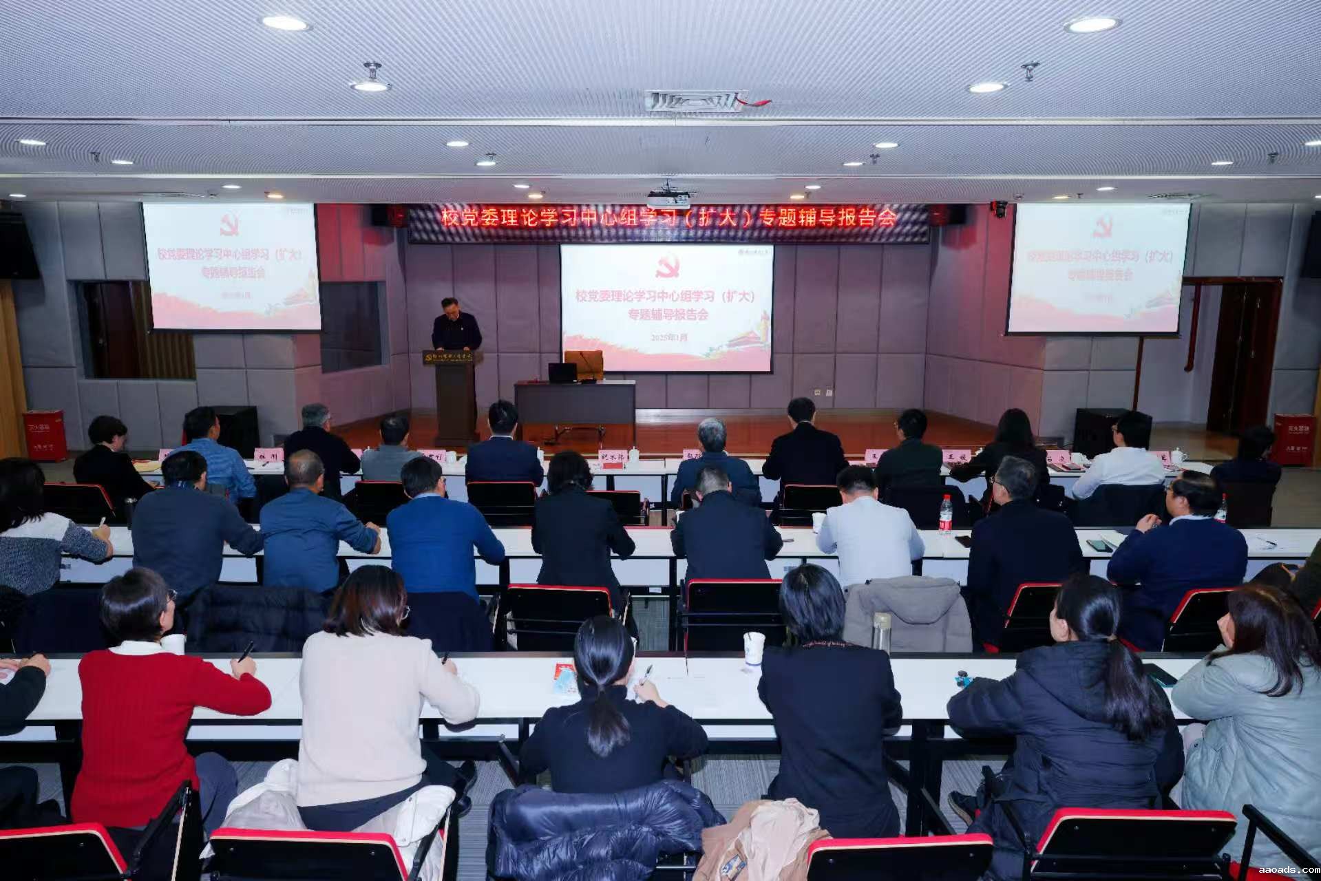 会议邀请山东大学原党委书记郭新立教授作专题辅导报告,主题为“以高质量党建引领中国特色世界一流大学建设”。郭新立从“以高质量党建引领中国特色世界一流大学建设的逻辑脉络”“探索‘一融双高’的方法路径”和“以高质量党建解决好中国特色世界一流大学建设的思想、道路、治理、生态问题”三个方面,作了一场主题鲜明、内容丰富、逻辑严密、立意深远的报告。郭教授结合长期从事教育政府主管部门的经历、丰富的基层高校试点经验和山东大学的具体实践,对“一融双高”的四个具体方法路径,即用好习近平新时代中国特色社会主义思想的“金钥匙”,把牢党对教育工作的全面领导的“定盘星”,破解重形式轻内容、重过程轻结果、重数量轻质量的“两张皮”问题和团结奋斗拧成“一股绳”做了全面详细的介绍,总结了在建设中国特色世界一流大学过程中的工作经验。