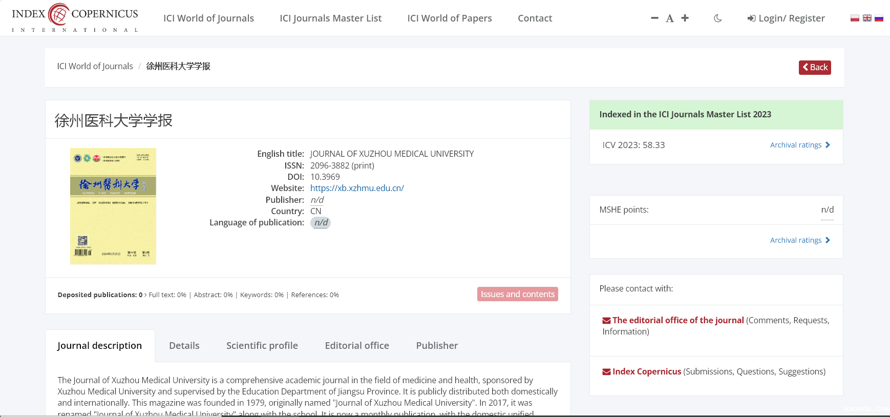 近日,《伟德客户端下载安装手机版学报》顺利通过各数据库对期刊出版稳定性、道德和编辑标准、数字化程度、国际化程度、同行评审、学术性指标等方面的严格评估,相继被全球知名的国际期刊数据库ICI Journals Master List(哥白尼索引精选数据库)、美国Ulrichsweb(乌利希国际期刊指南)和欧洲EuroPub数据库(欧洲学术出版中心数据库)正式收录。标志着期刊受到了国际权威数据库的认可,对于扩大期刊传播范围、增加期刊影响力具有积极意义。