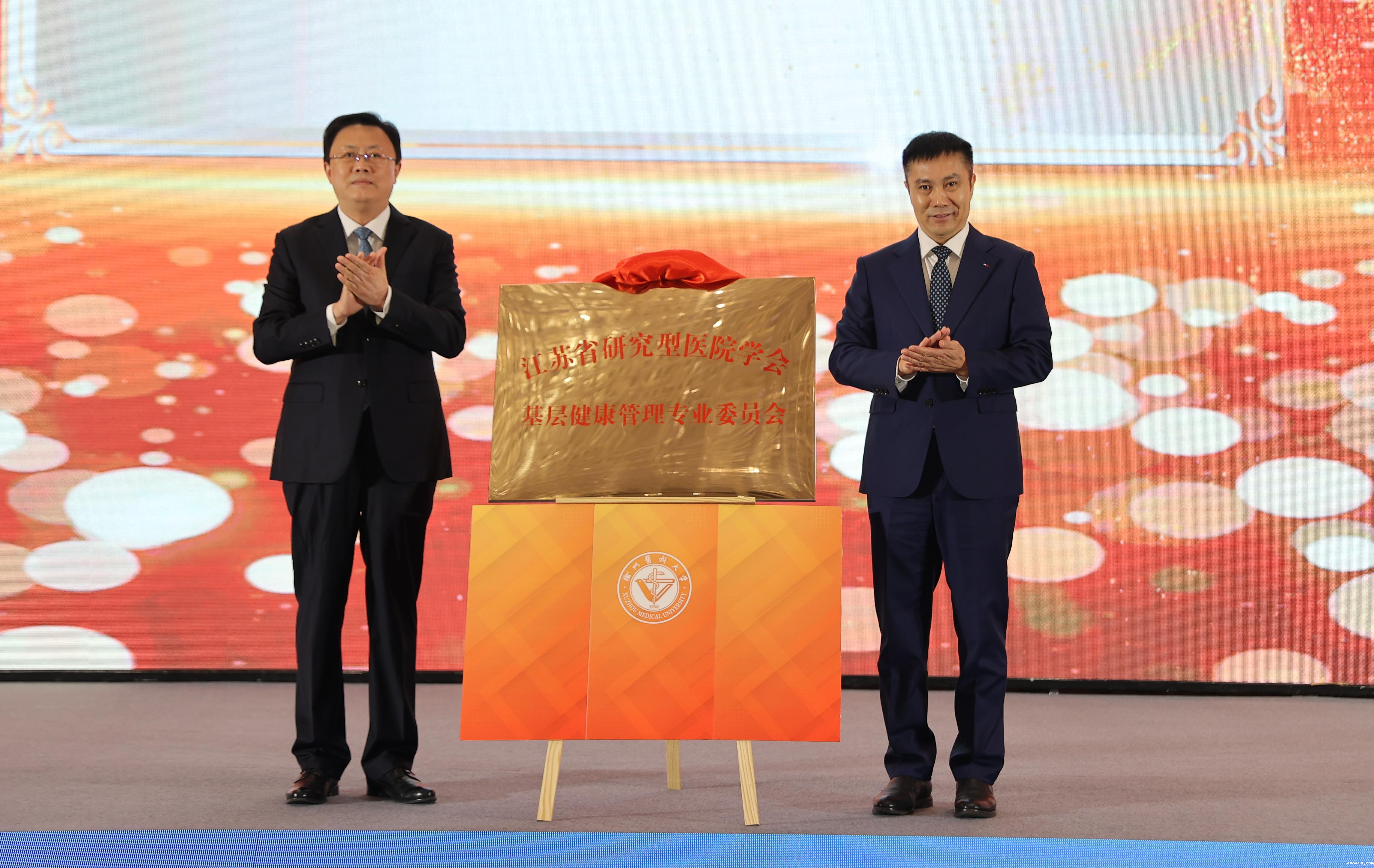 会上举行了江苏省研究型医院学会基层健康管理专业委员会揭牌仪式,市委常委、秘书长吴卫东和校党委常委、副校长刘慎军共同揭牌。