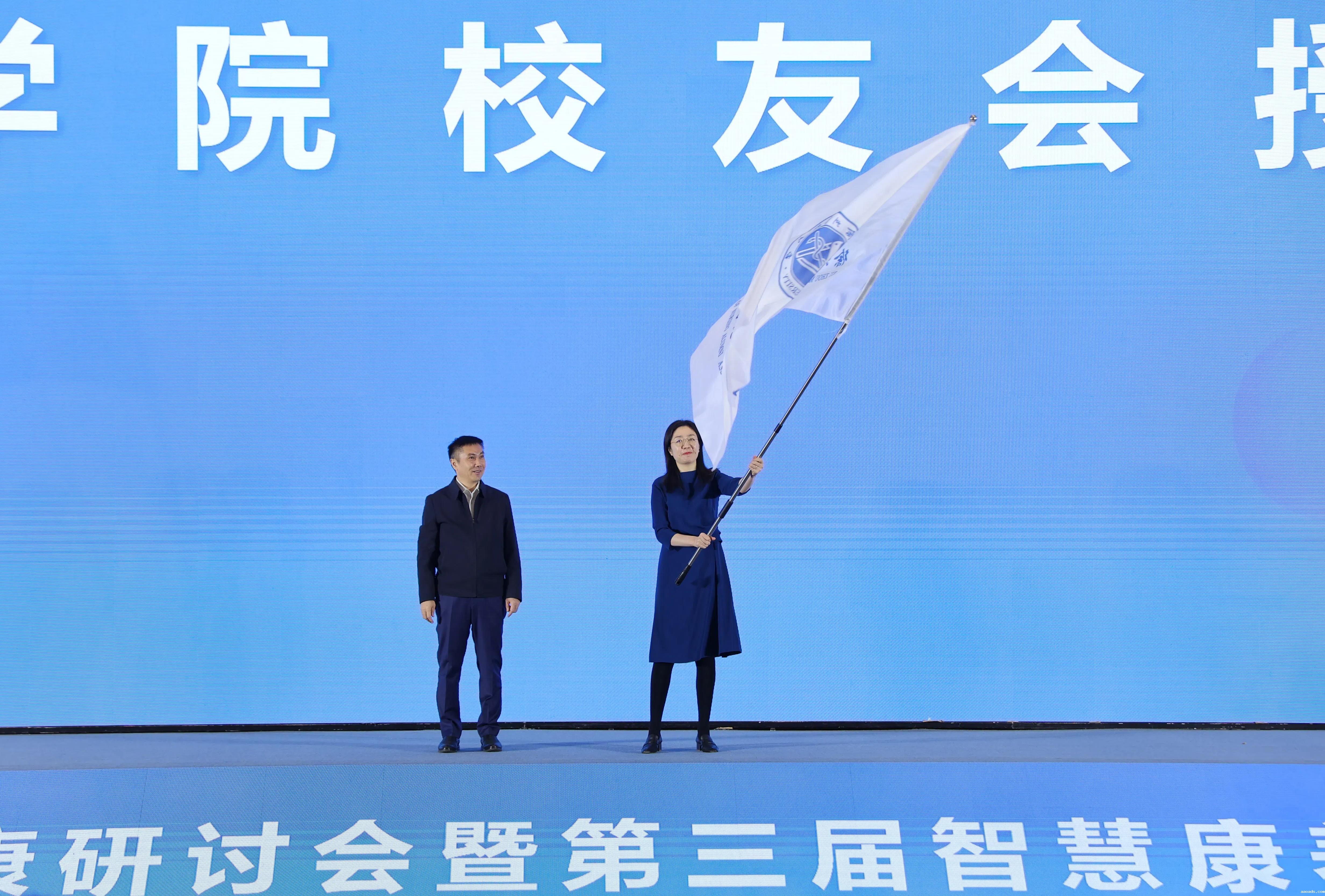 刘慎军向护理学院校友会授旗。与会领导给校友联络员颁发聘书。