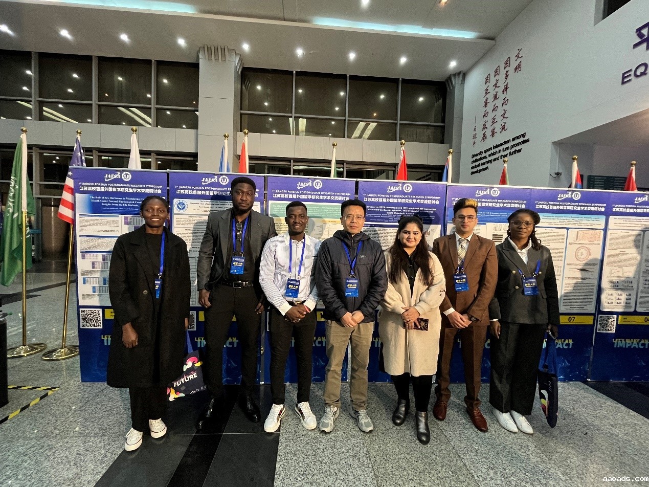 12月1日,江苏高校首届外国留学研究生学术交流研讨会在江苏大学落下帷幕,来自全省36所高校500余名中外研究生参加了本次研讨会的开幕式,24所高校的87篇优秀论文经过遴选进入线下交流环节。我校国际教育学院院长张卓琦、留学研究生班主任段荣泉老师带领5名论文入选研究生参会。在本次研讨会论文评比中,基础医学院博士生Prosperl Ivette Wowui荣获“学术论文奖”特等奖和“最佳墙报奖”,博士生Richard Mprah荣获二等奖,博士生Joseph Adu-Amankwaah荣获三等奖,公共卫生学院硕士生Natasha Mary Weah和第一临床医学院硕士生Syed Haseeb Zia荣获优秀奖,伟德客户端下载安装手机版荣获“优胜奖”。