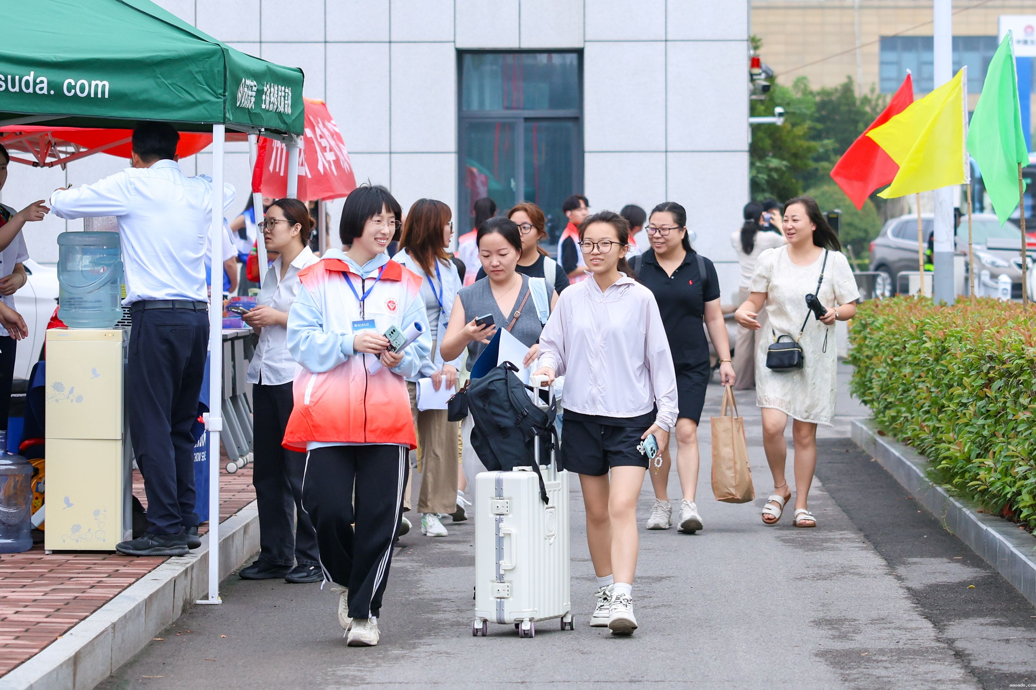 为保障2025级新生开学报到工作平稳有序,学校多部门协同联动,统筹校园安全与人性化服务:学校招募志愿者百余名,协助新生搬运行李、指引答疑;保卫处全面设置导向标识与路口引导岗;畅通“绿色通道”,切实解除学生后顾之忧,助力其安心就学、从容启程。